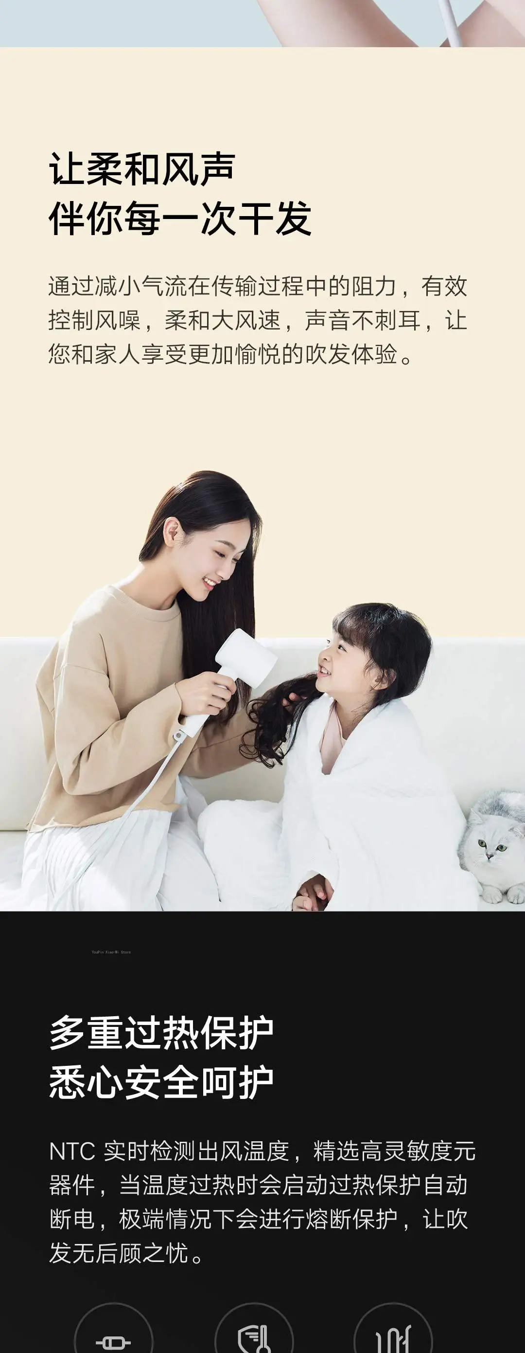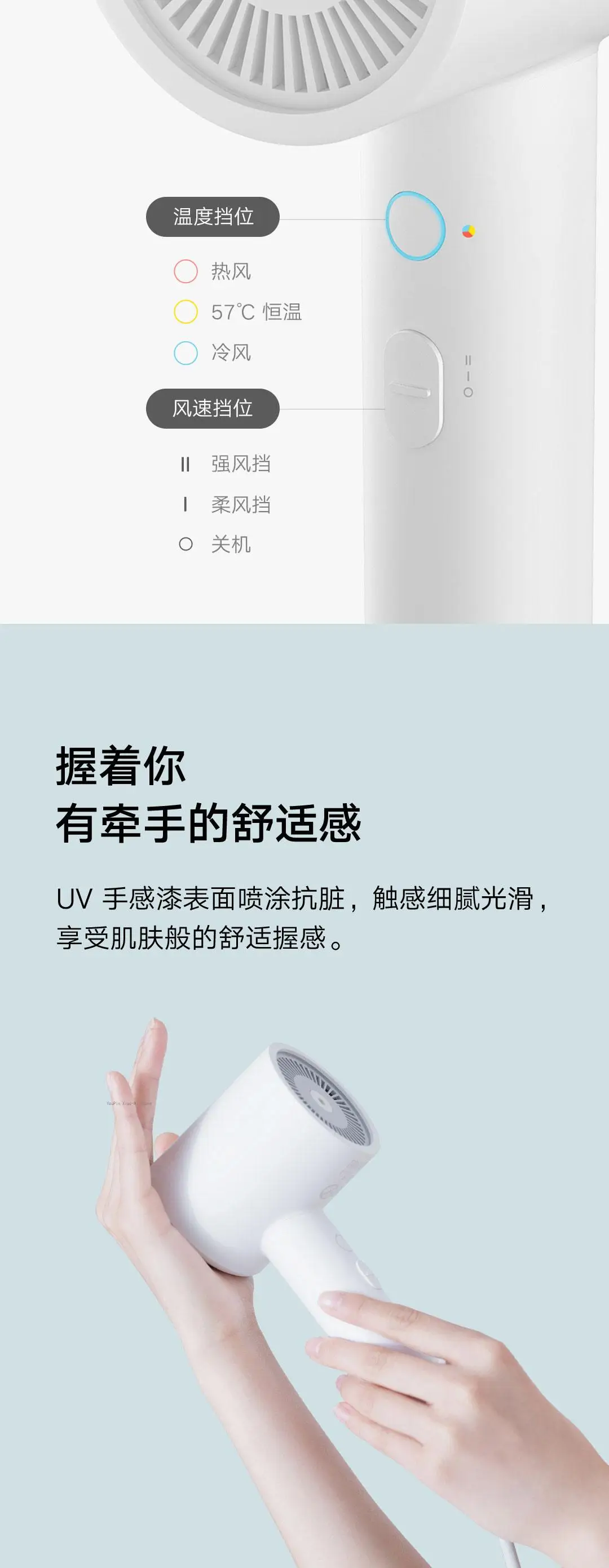 Xiaomi Mijia анион Быстросохнущий фен H300 57 ℃ термостат 20 м/с скорость выдувания портативный мини Фен Диффузор