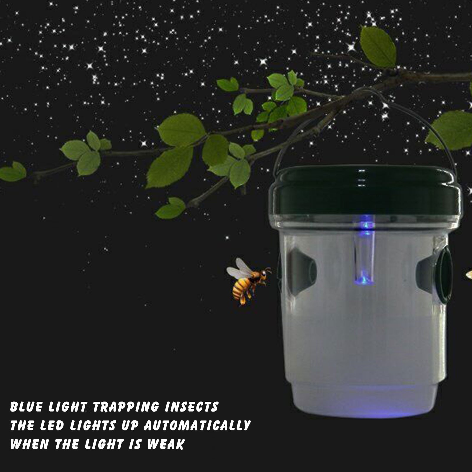 Ловушка для ОС имеет 1 шт. синий светодиодный светильник с зарядкой от солнечной энергии, в ночное время этот светильник может привлечь больше насекомых к полету в отверстие.