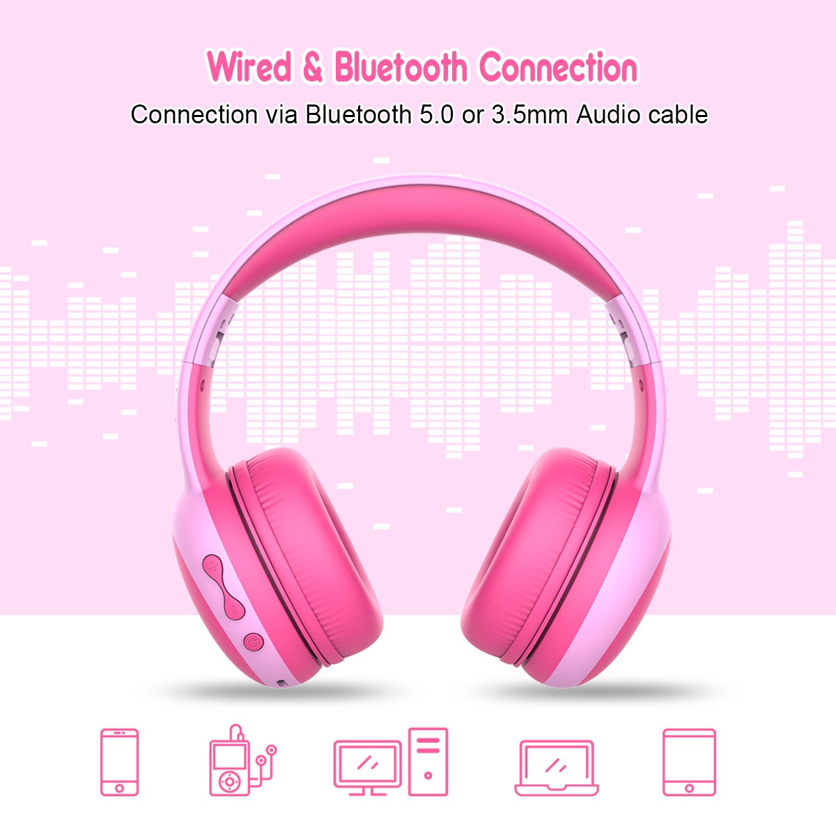 Детские наушники gorsun с резиновым материалом (не легко царапать, как Долгое время использования), очаровательный цвет, качественный звук, до 12 часов воспроизведения После полной зарядки, Незабываемый подарок для ваших детей... Создайте большой Сюрприз для ваших милых детей.