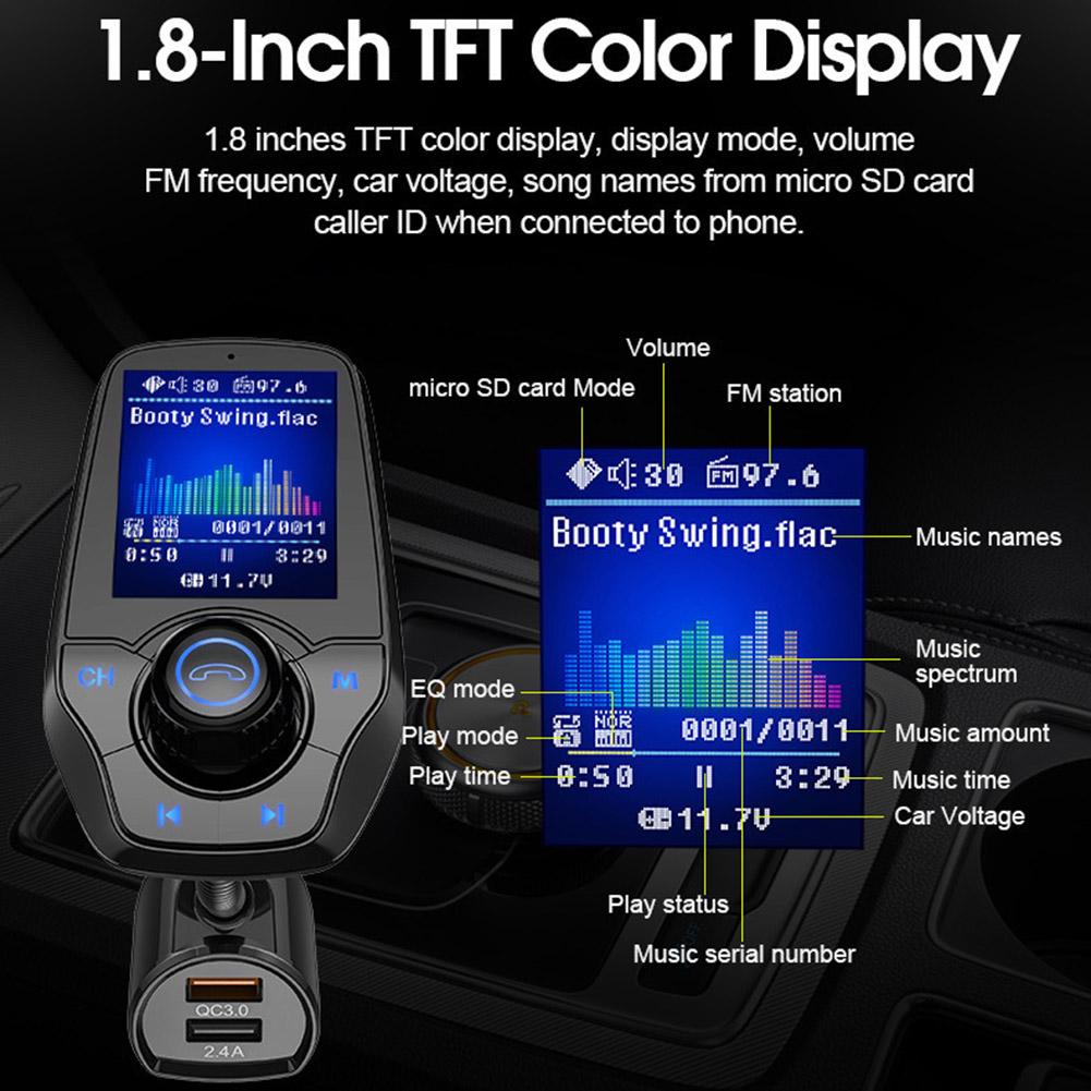 T26D большой цветной экран автомобильный Bluetooth MP3 музыкальный плеер QC3.0 автомобильное быстрое зарядное устройство