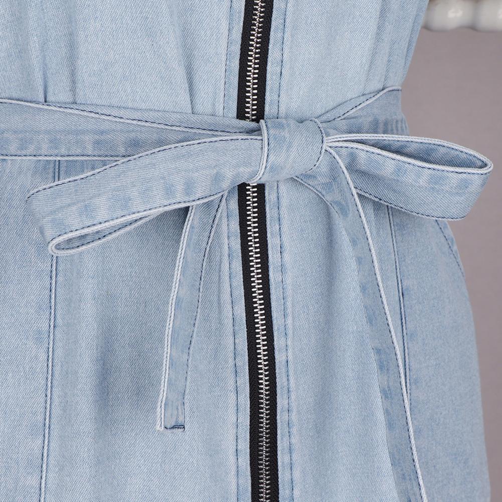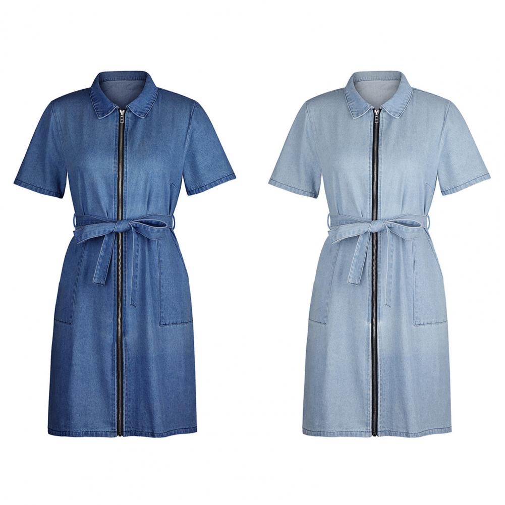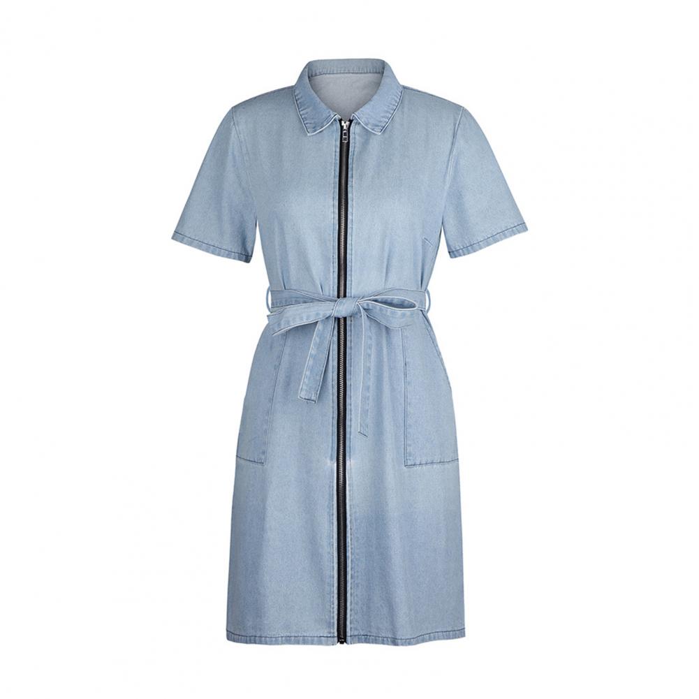 Платье спроектировано с поясом на талии, короткими рукавами, молниями и карманами. Это платье регулируется, легко хранить мелкие предметы.