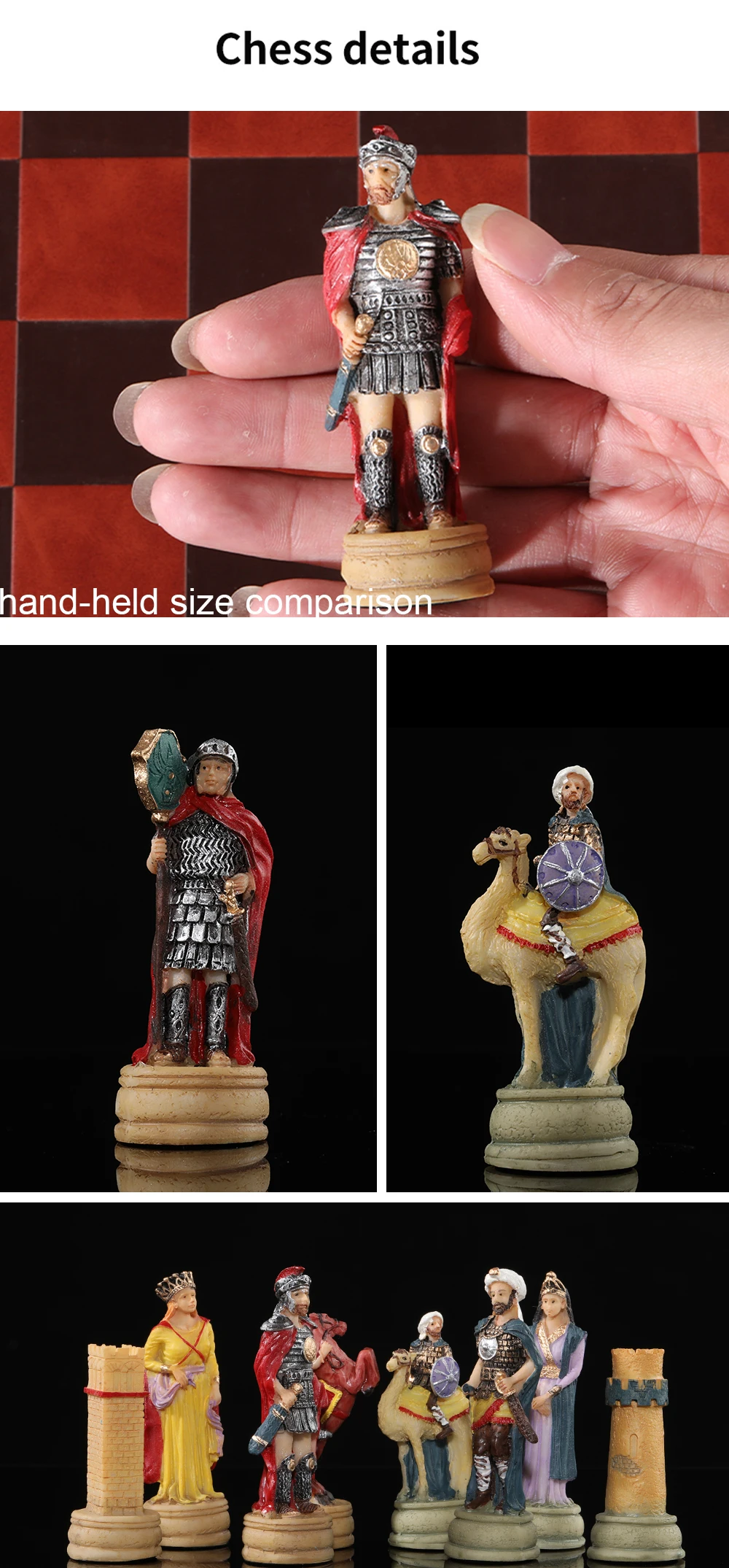 Тема шахматы настольная игра Развлечения игрушка роскошный рыцарь кожа шахматная доска рыцарь шахматы ручная роспись римские войны