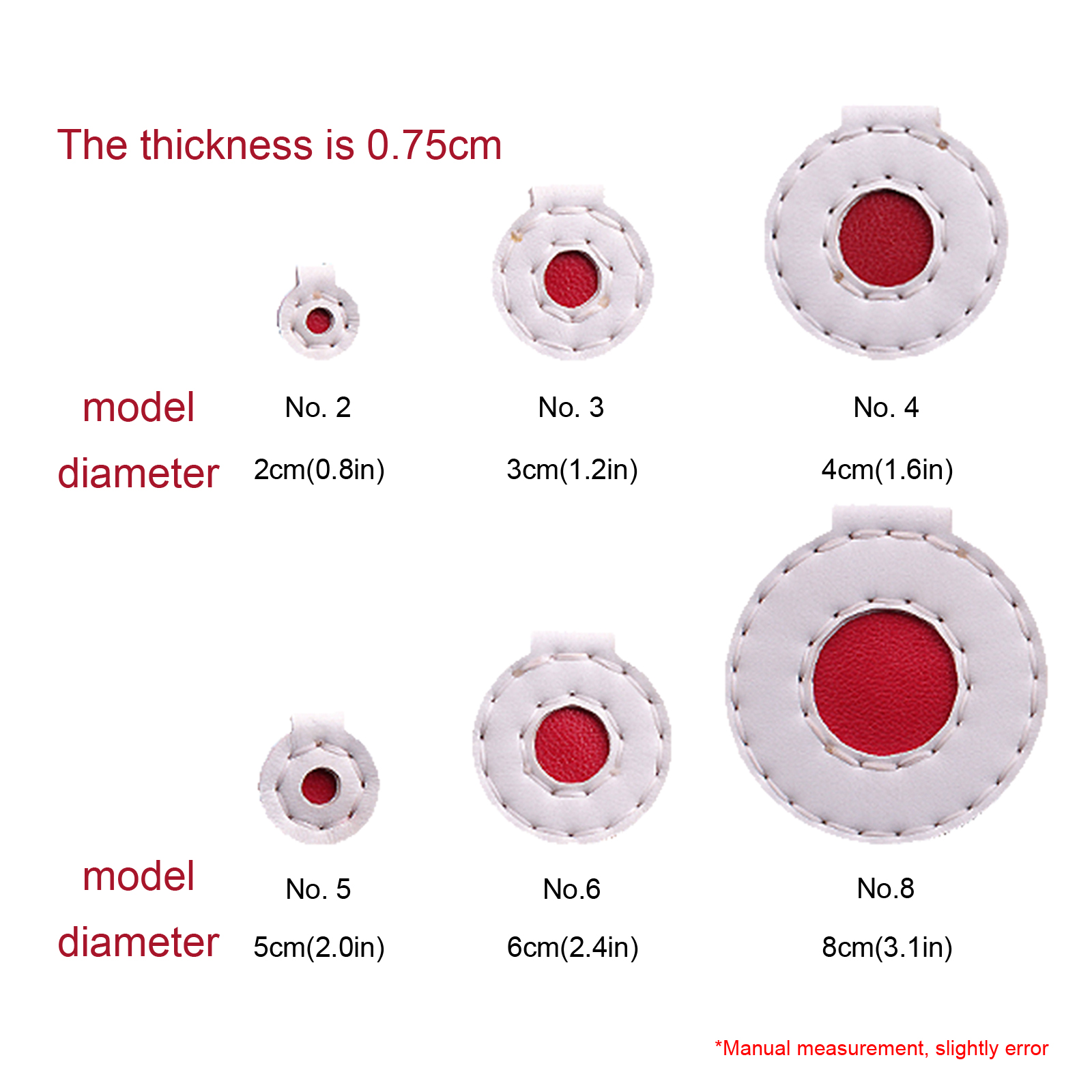 Diameters: 2cm, 3cm, 4cm, 5cm, 6cm, 8cm