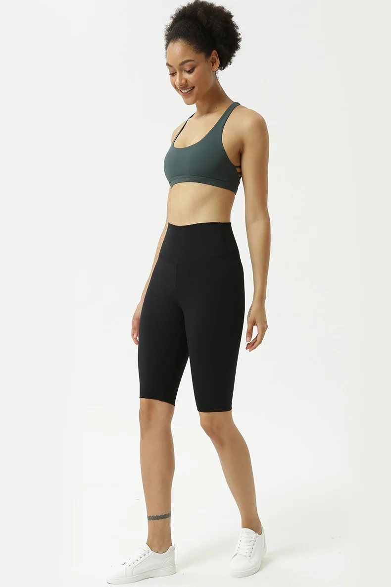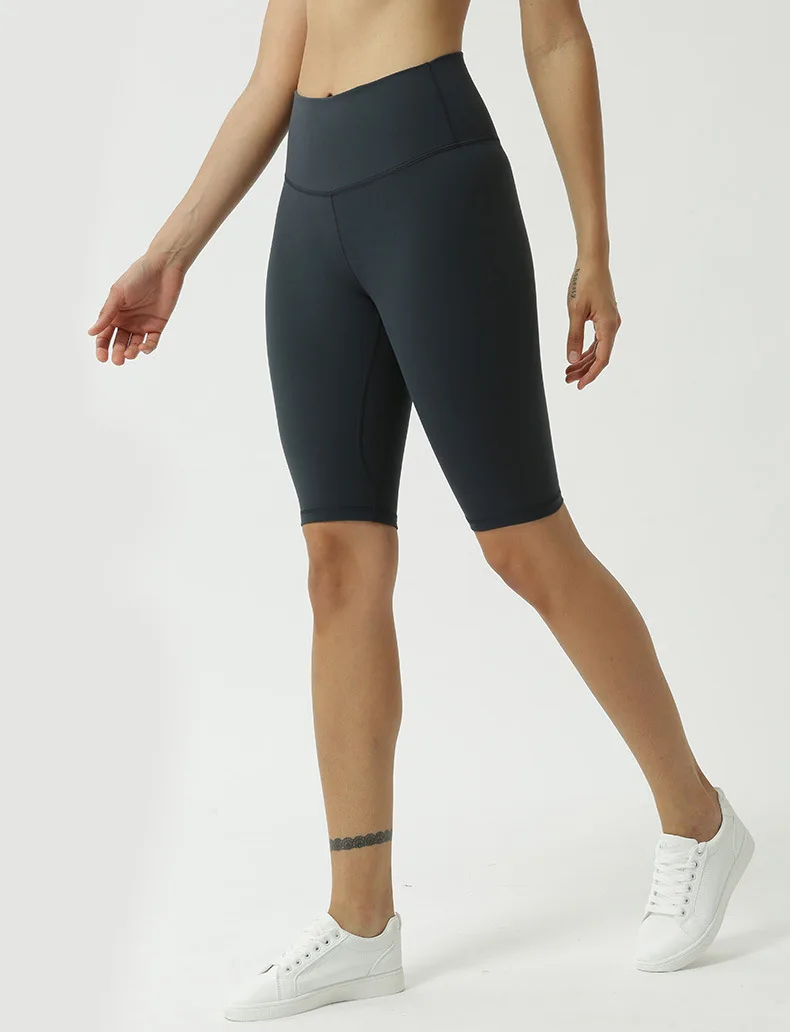 Женские Штаны Для Йоги телесного цвета с высокой талией, штаны для йоги с пятью точками, спортивные шорты для бега, фитнеса