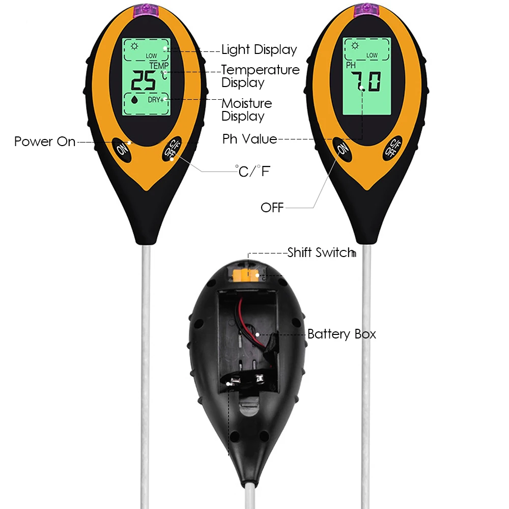 Для использования в помещении и на открытом воздухе-конструкция легкая и портативная, почвенный рН-метр легко переносится для использования на открытом воздухе и является идеальным набором инструментов для тестирования почвы для домашних растений, сада, лужайки и фермы.
