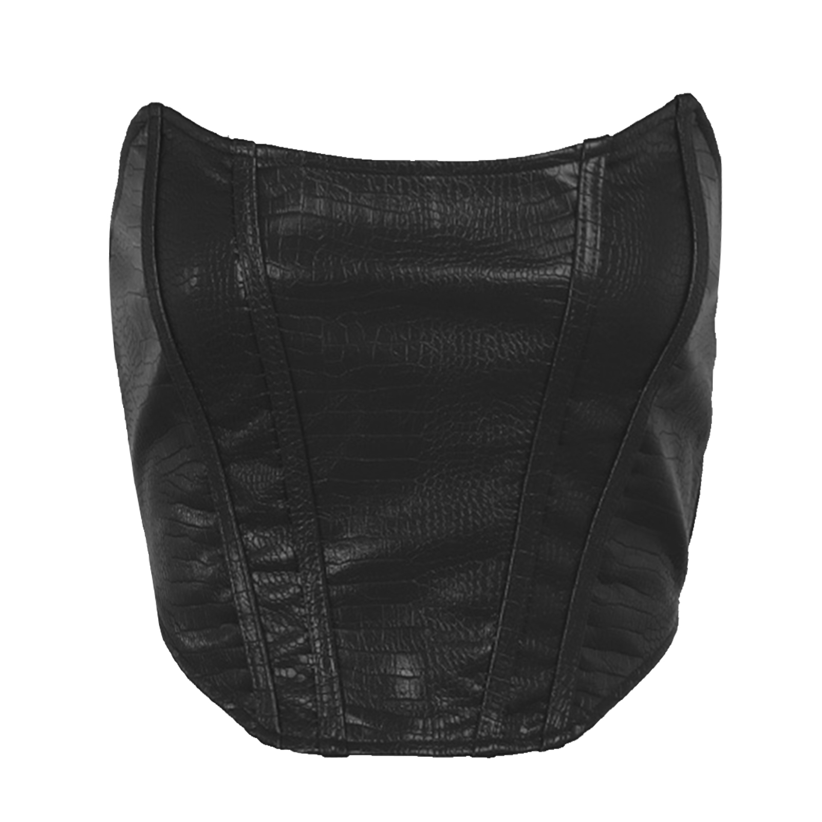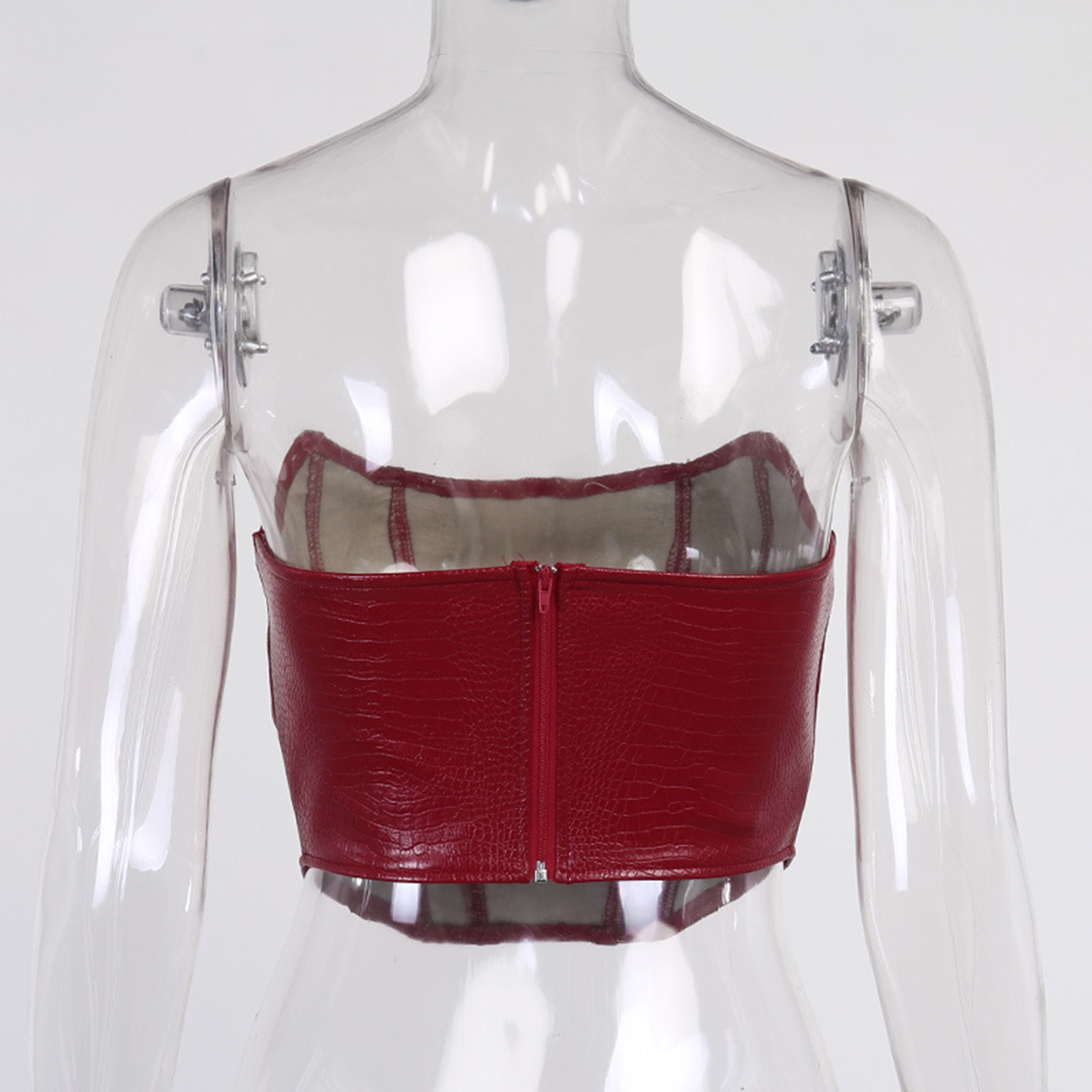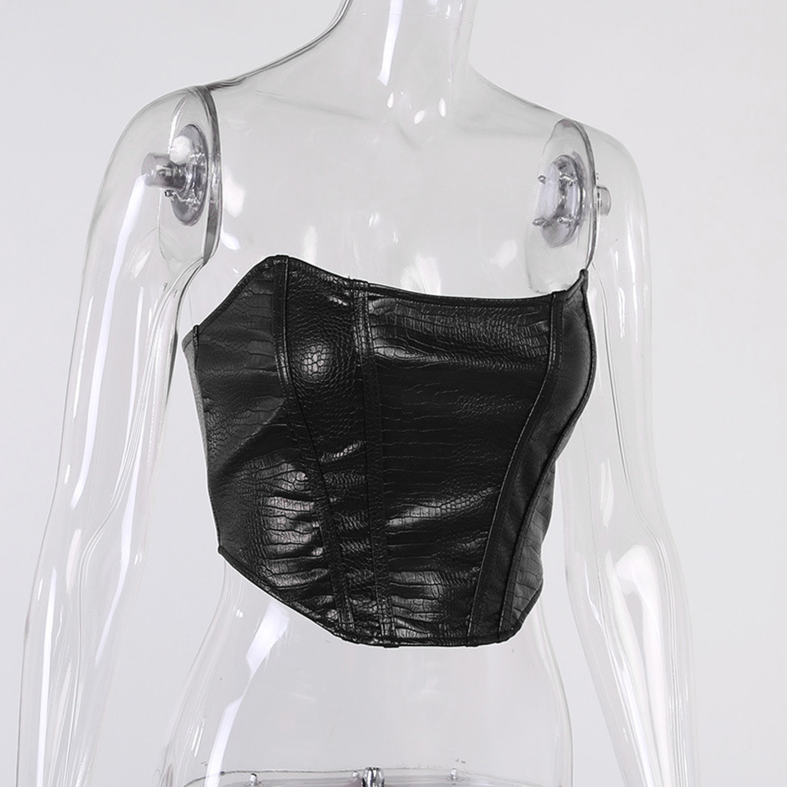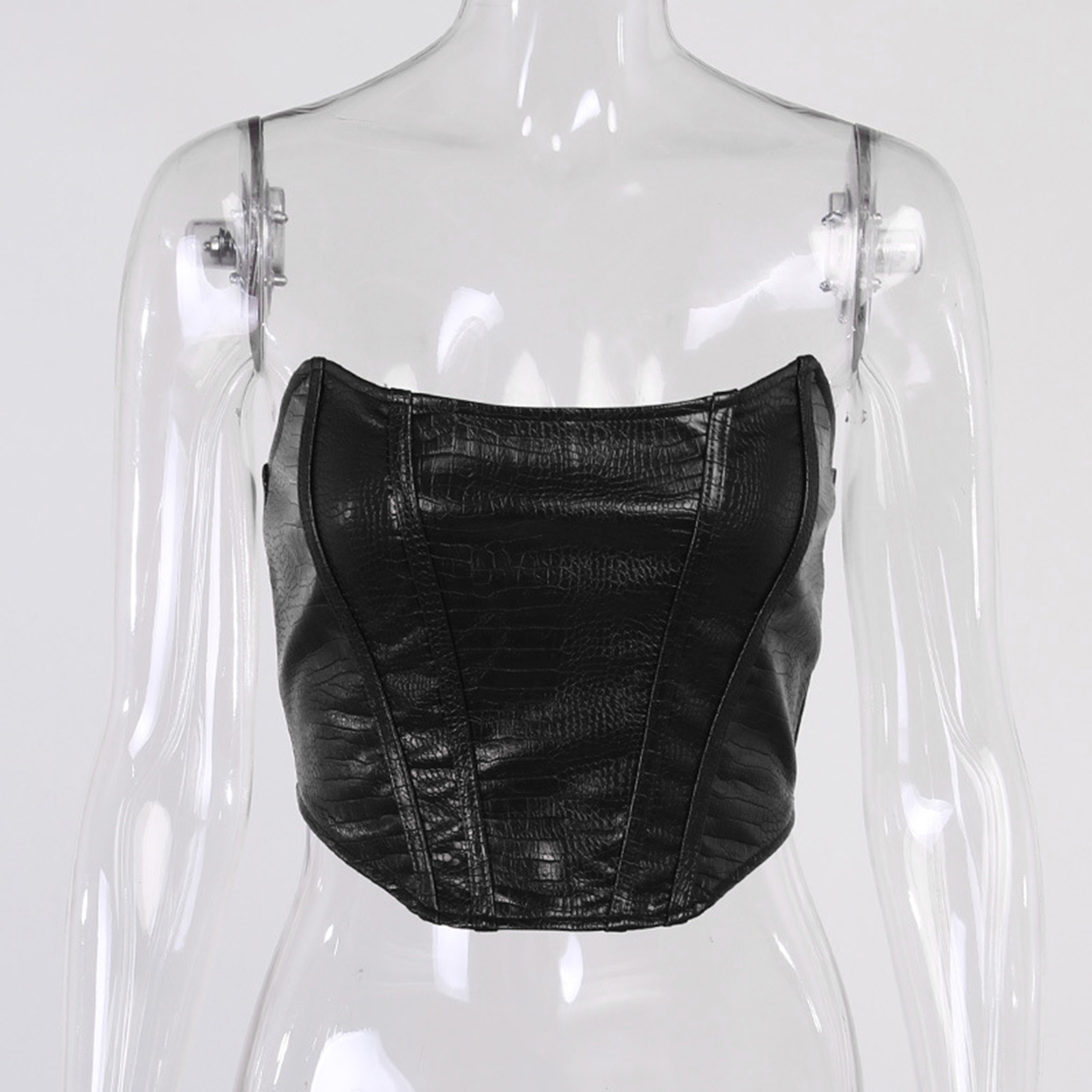 Женские кроп-топы из искусственной кожи без бретелек с узором «крокодиловая кожа» на молнии сзади.