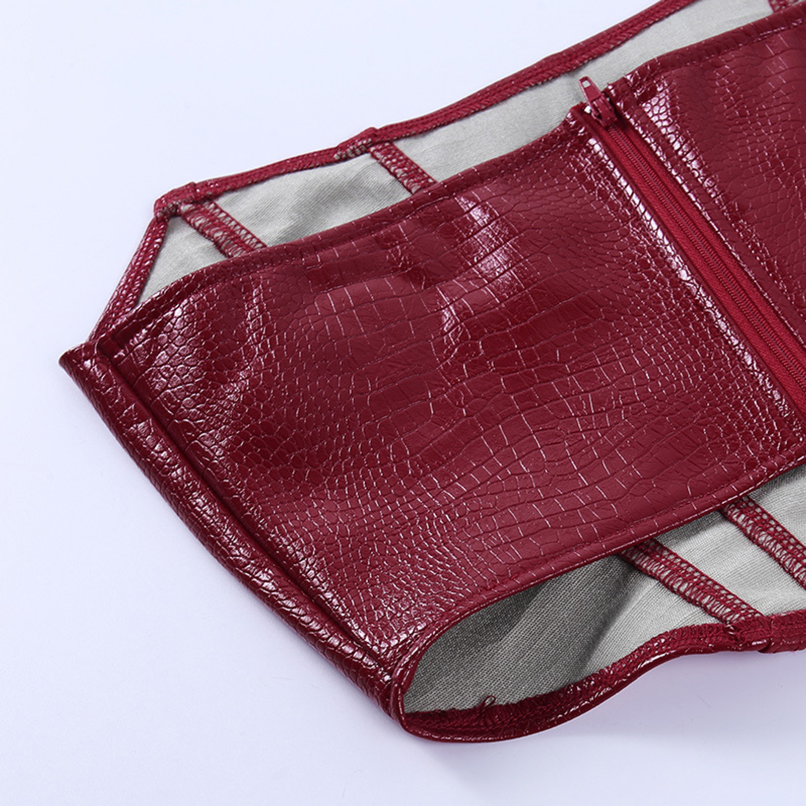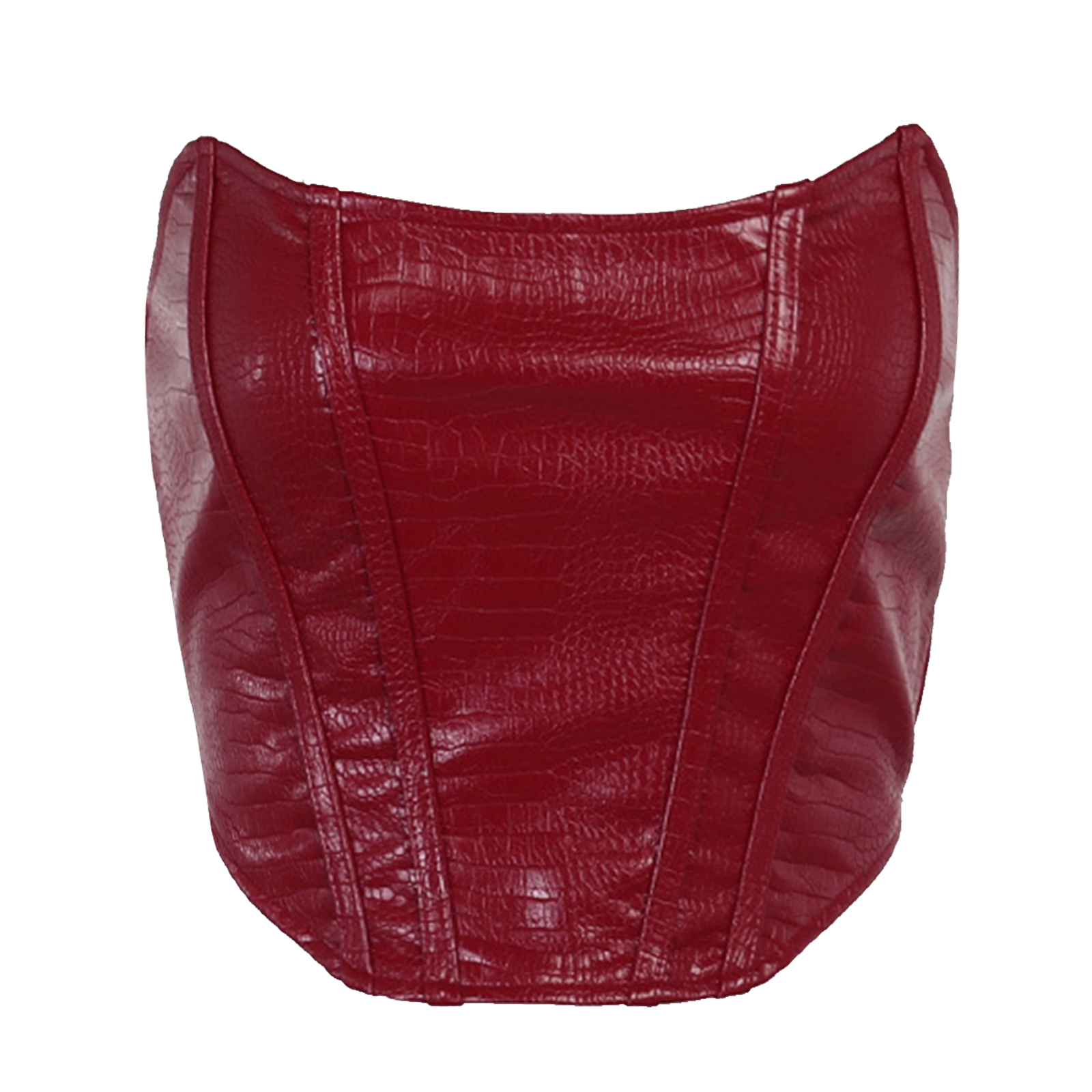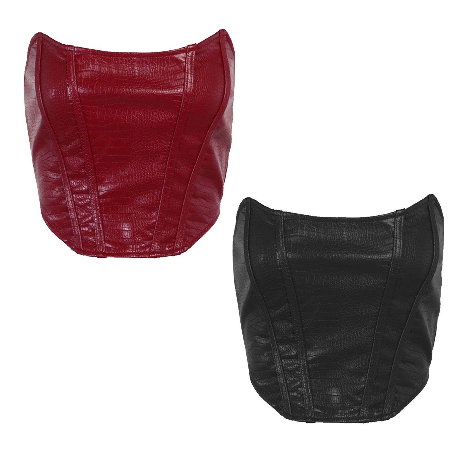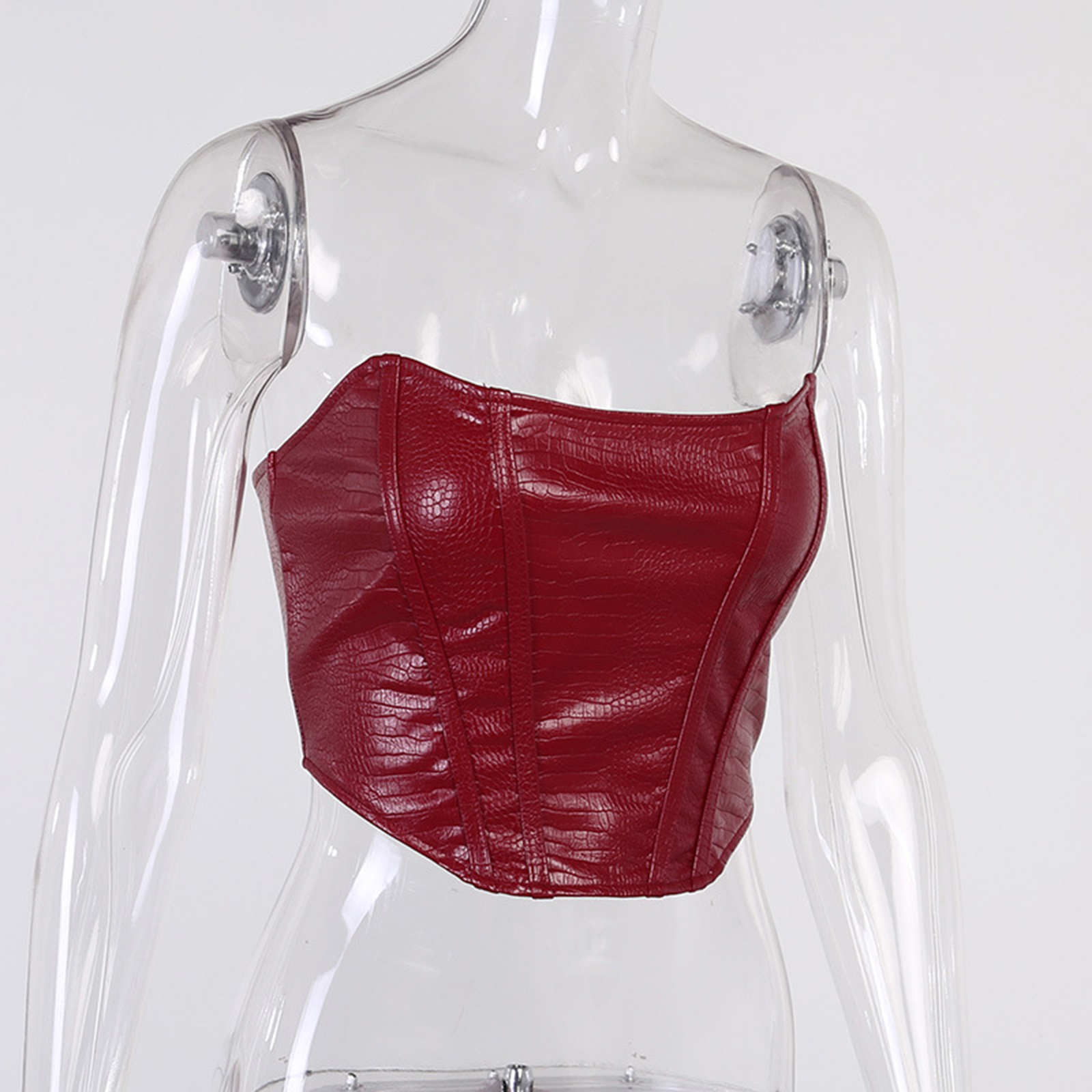 Женские кроп-топы из искусственной кожи без бретелек с узором «крокодиловая кожа» на молнии сзади.