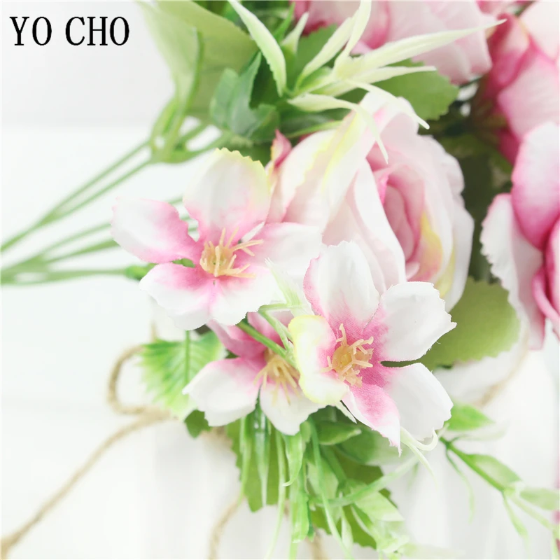 Йо Чо красные искусственные шелковые розы Букет цветов для свадьбы невесты, держащих дома поддельные белые цветы дешево для украшения дома стола