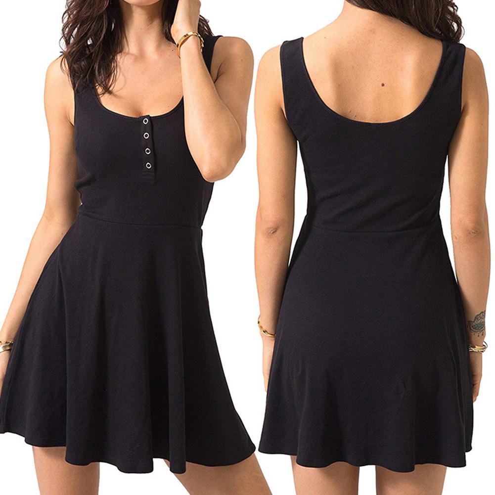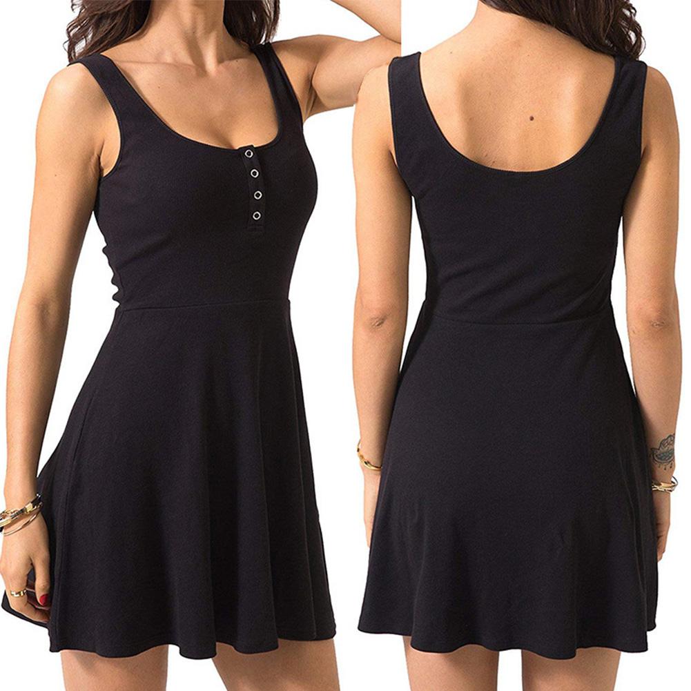 Однотонное модное женское повседневное короткое платье без рукавов с u-образным вырезом
