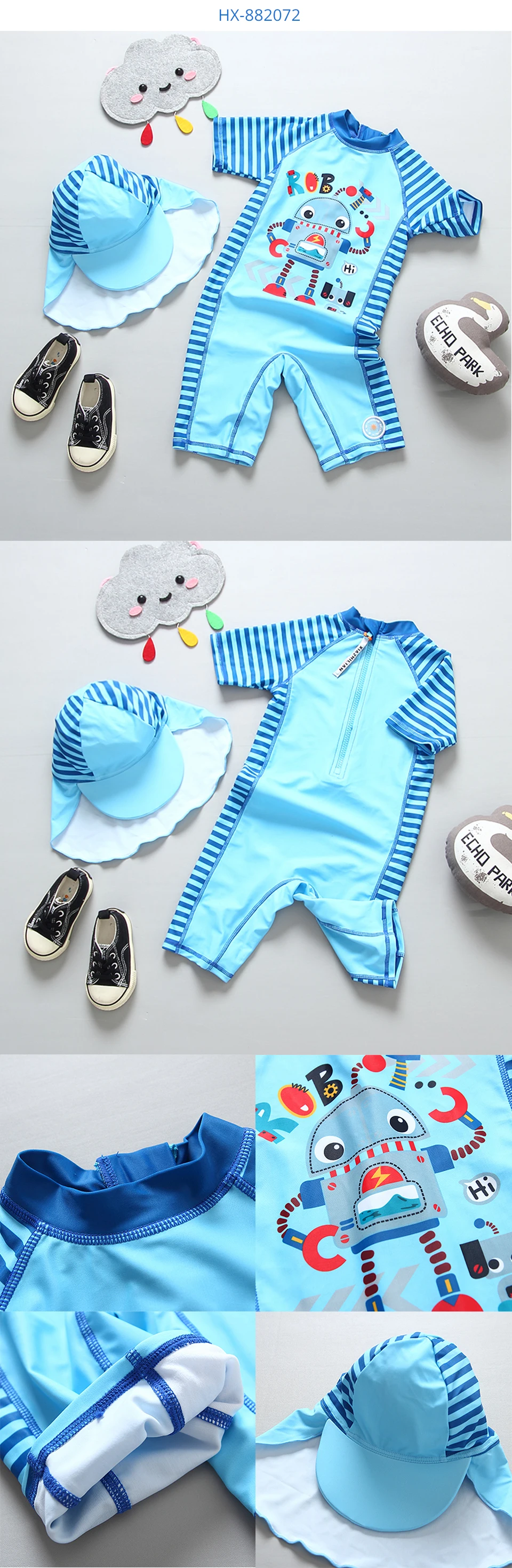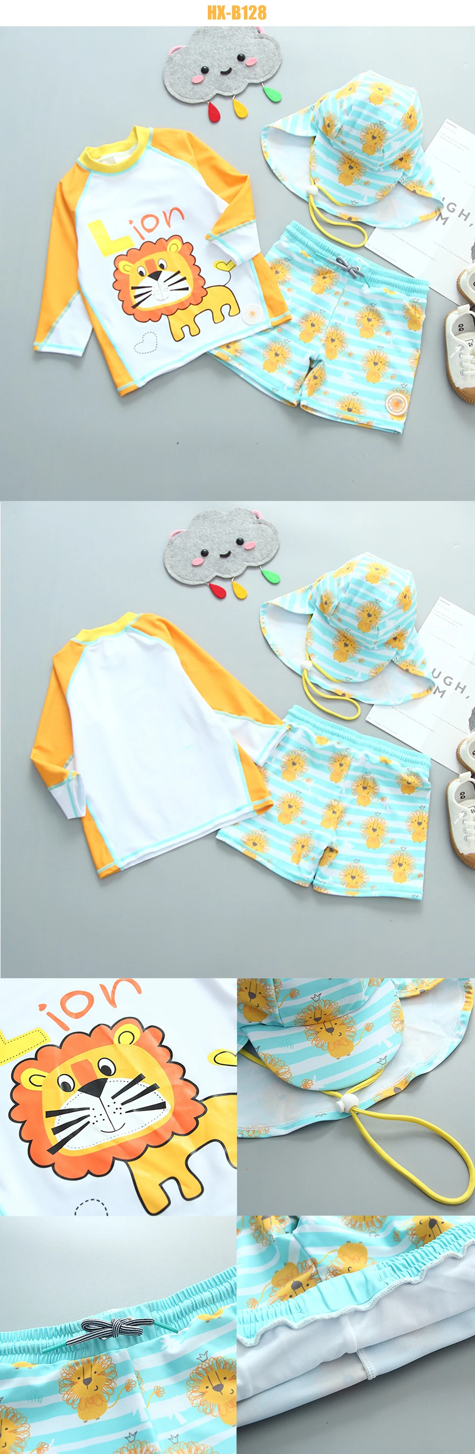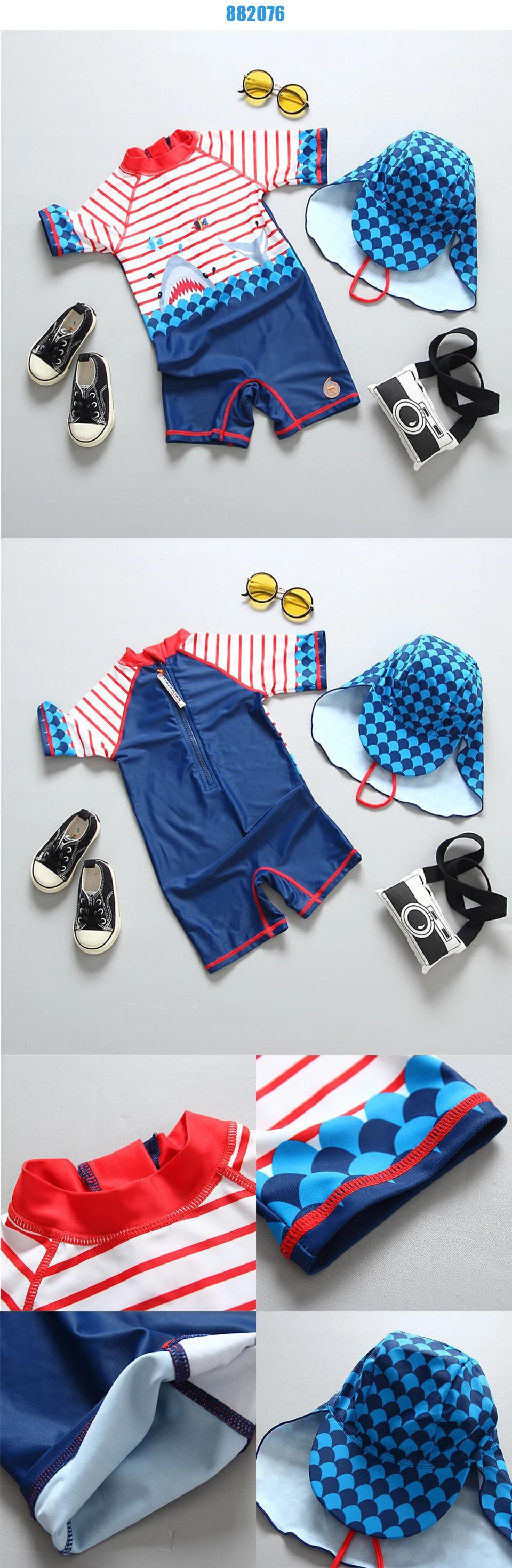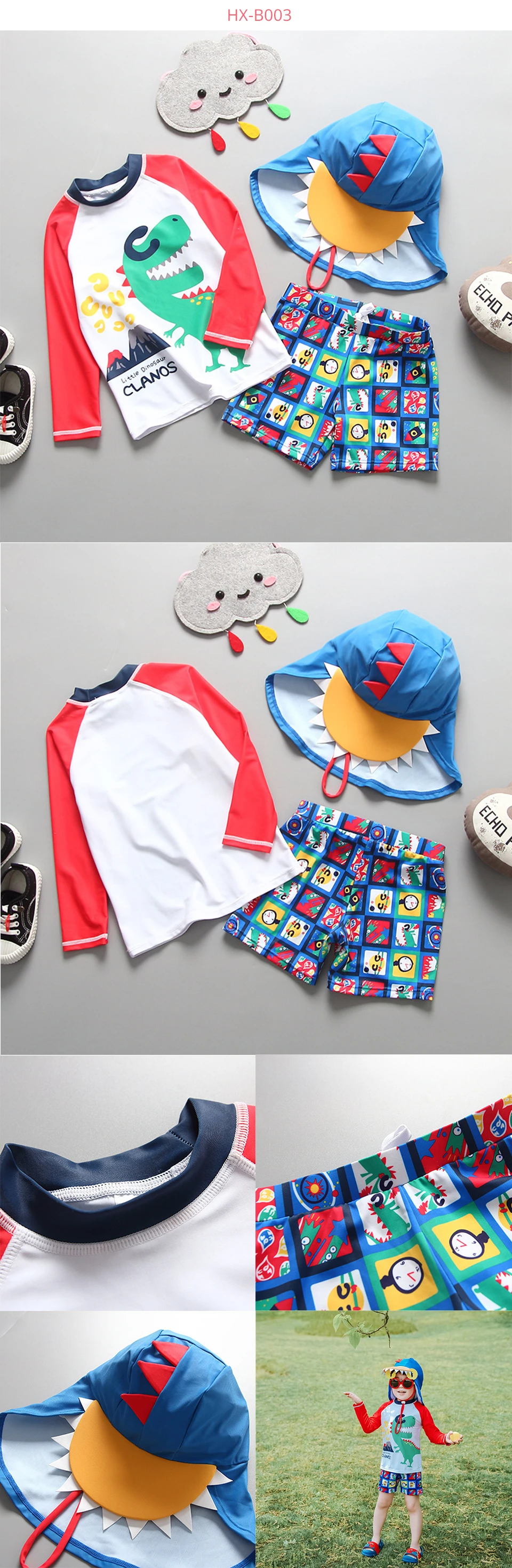 С UPF 50 + защита от солнца с мультяшным принтом динозавра и акулы, этот набор Рашгард держит его милым и защищенным весь день.