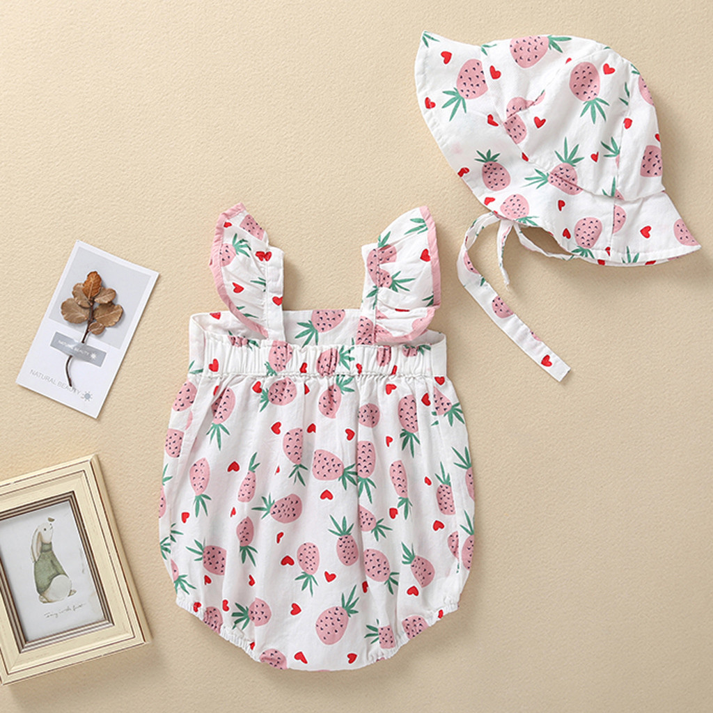 Комбинезон с принтом клубники для новорожденных и маленьких девочек; Комбинезон с шапочкой
