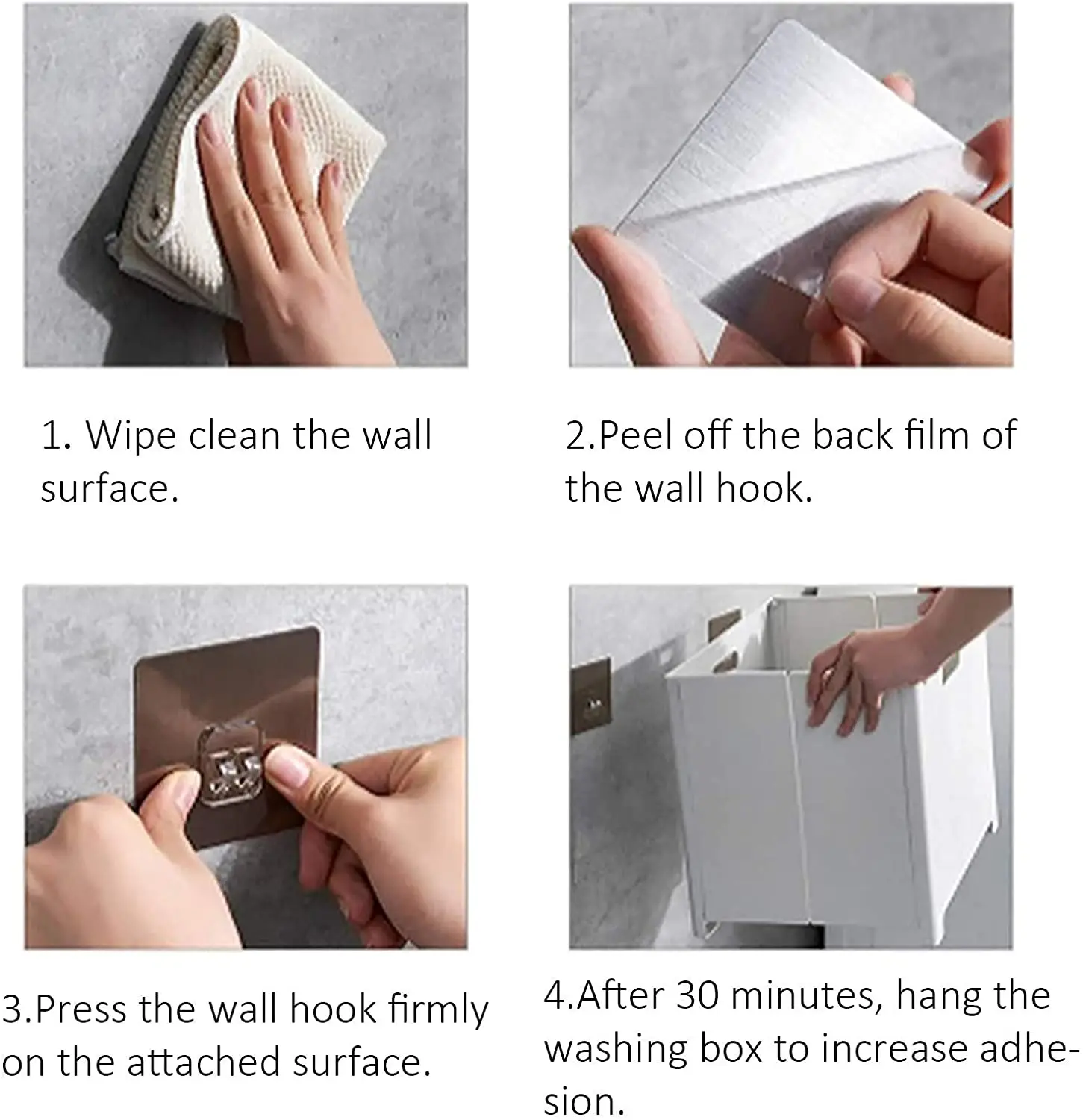 Прочная и прочная: подвесная корзина для белья, изготовленная из высококачественного полипропиленового материала, прочная и долговечная, крючок для бесшовного крепления, сильная адгезия, сильная несущая способность, нелегко упасть (рекомендуется установить на гладкую поверхность).