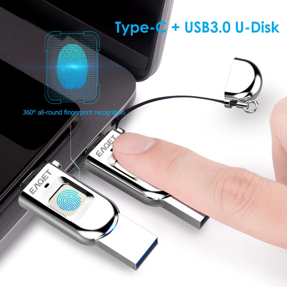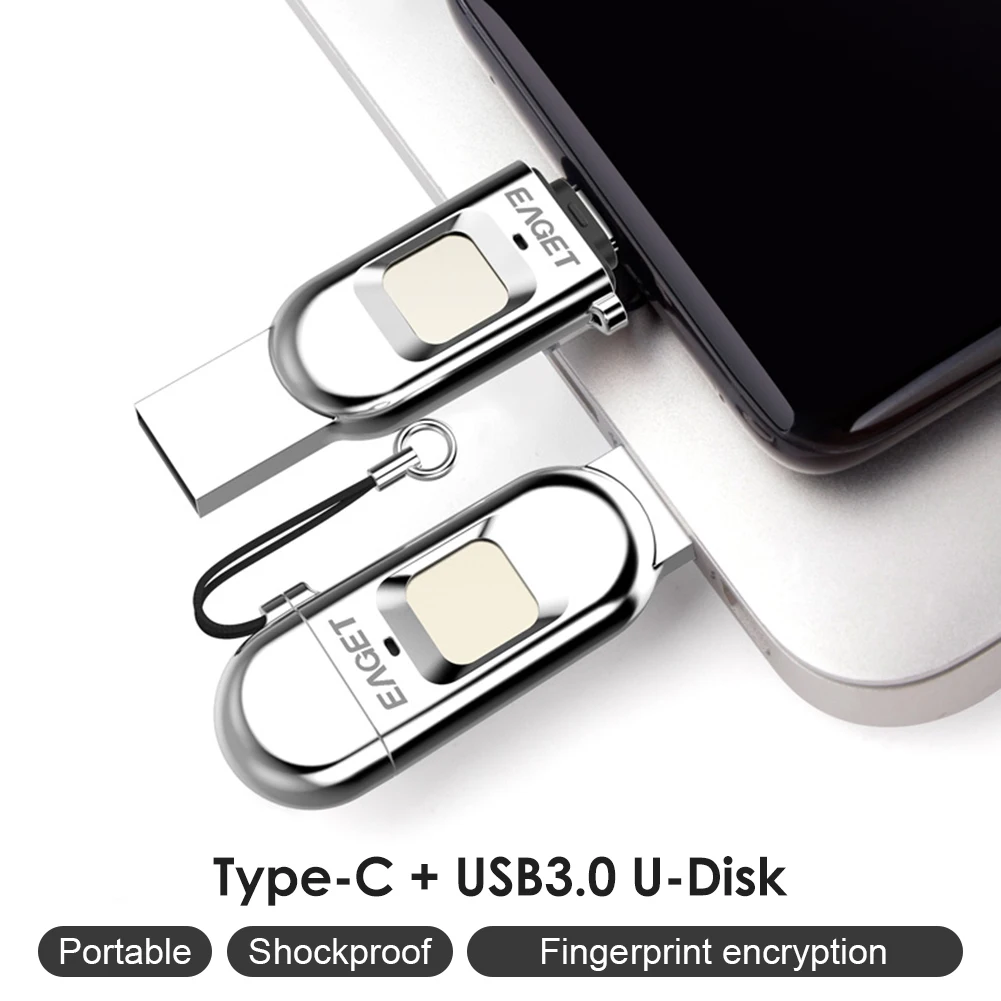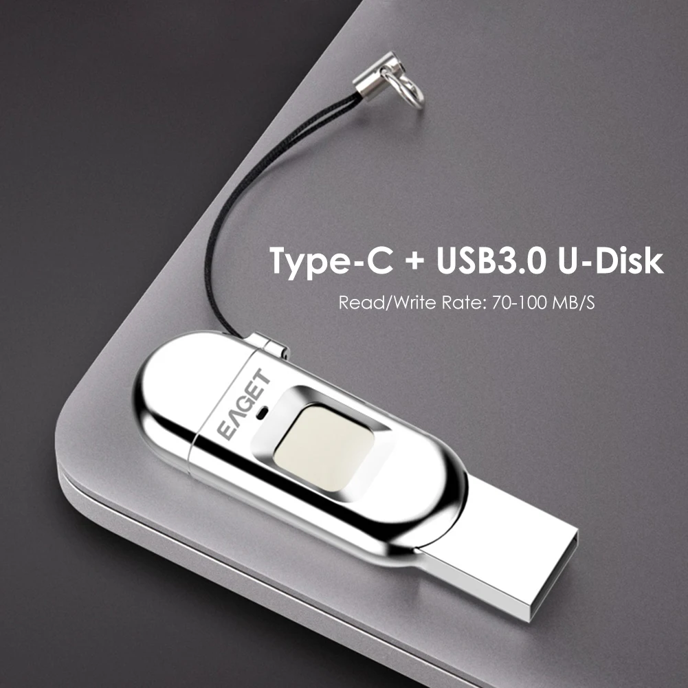 Eaget FU68 USB флеш-накопитель с отпечатком пальца 128 Гб 64 ГБ 32 ГБ USB Type C Флешка OTG Jump Флешка для ПК телефона