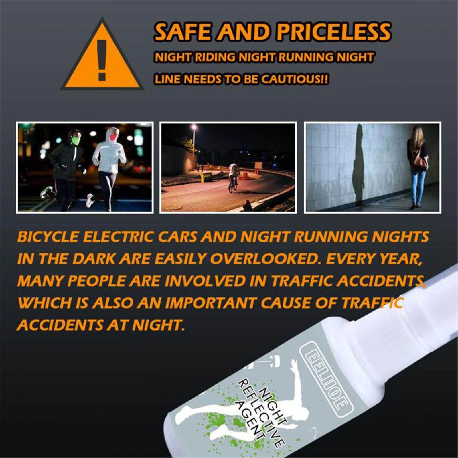 Высокая Видимость: Может наноситься практически на любую поверхность. Ночная Светоотражающая краска спрей сделает вашу одежду, велосипед и шлем яркими за считанные секунды.