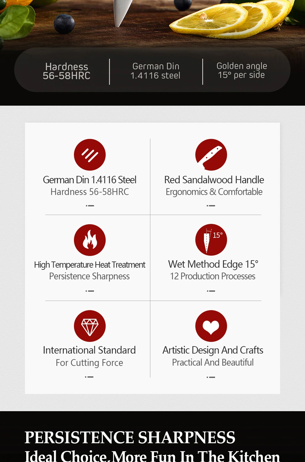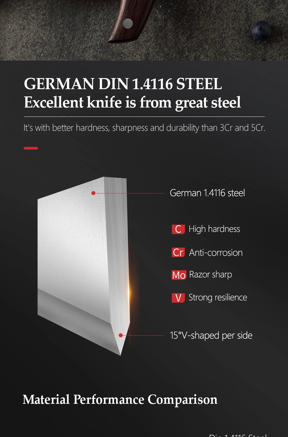 Материал лезвия:1,4116 молибденовая ванадиевая сталь Германии ThyssenKrupp Ggroup
