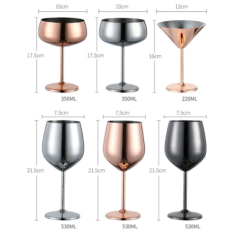 1. Большие элегантные бокалы для вина из нержавеющей стали с высоким тонким стержнем. Изготовлены из высококачественной пищевой нержавеющей стали; Эти изолированные стаканы небьющиеся, легкие, компактные и имеют противоскользящее дно.