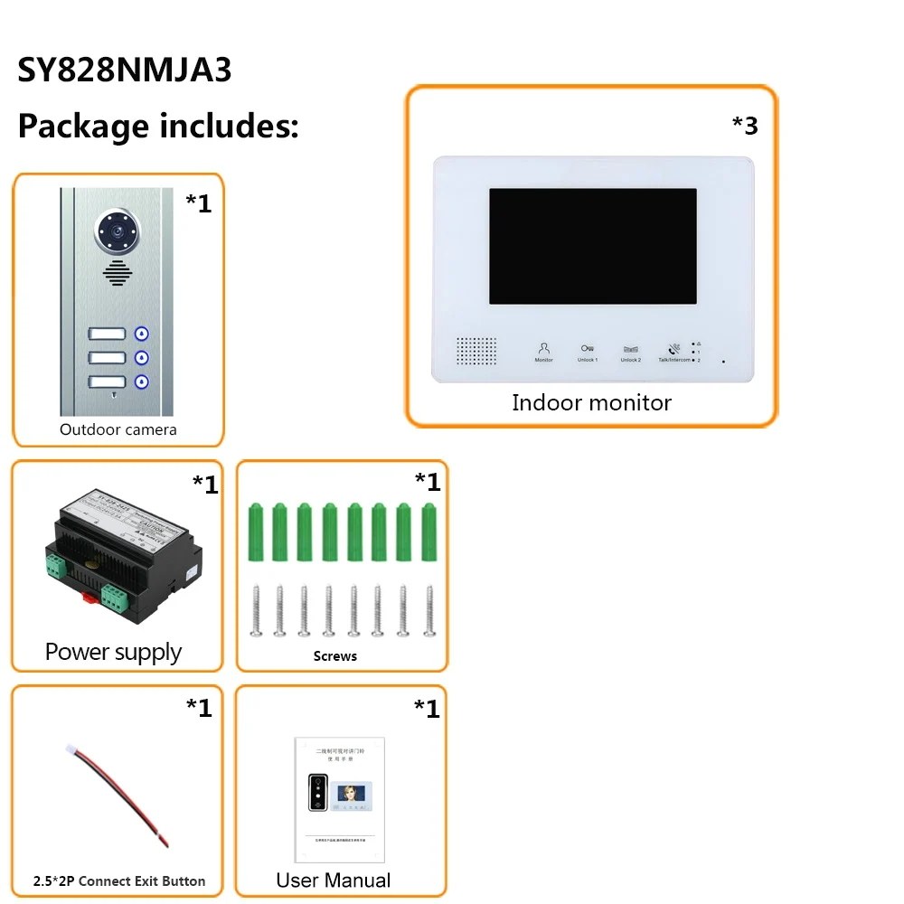 2.Using integrated power suppply,max support 2 outside unit and 4 indoor monitors