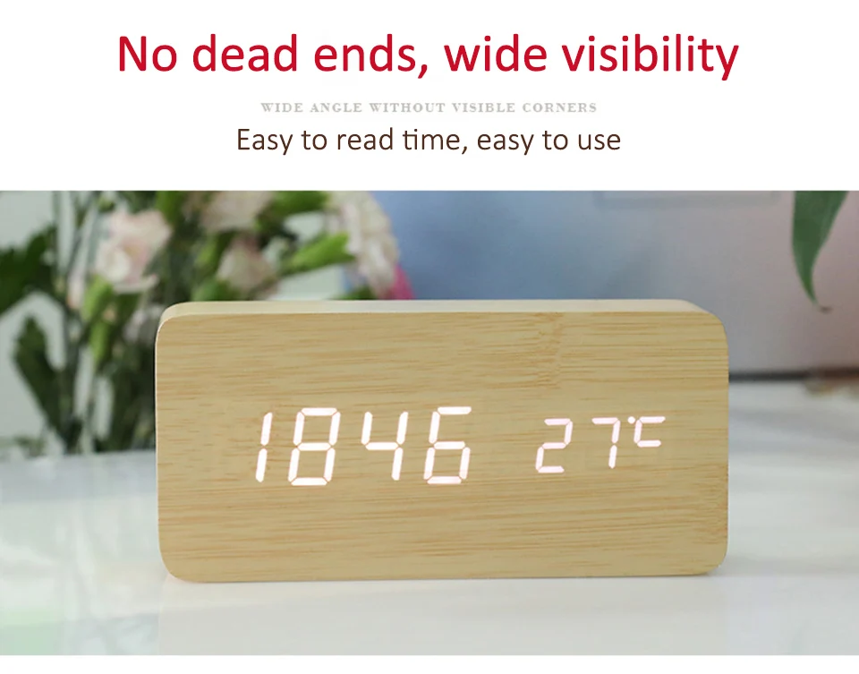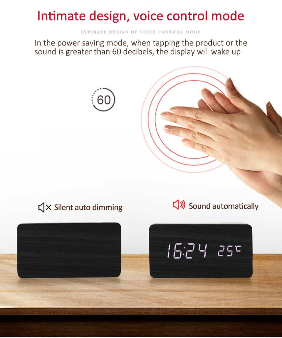 Светодиодный деревянный будильник время/дата/температура цифровые бамбуковые деревянные часы для голосового стола Светодиодный дисплей настольные цифровые часы