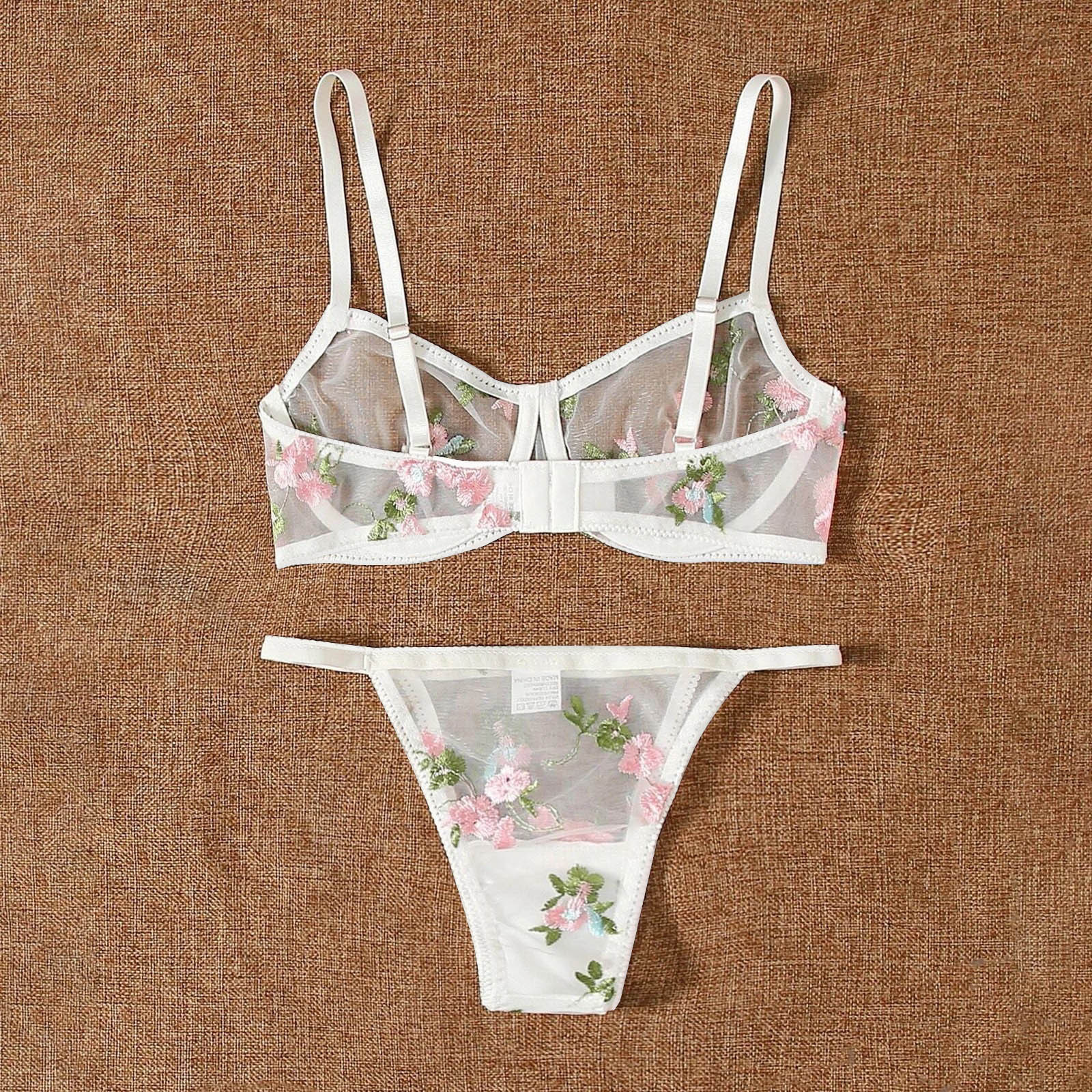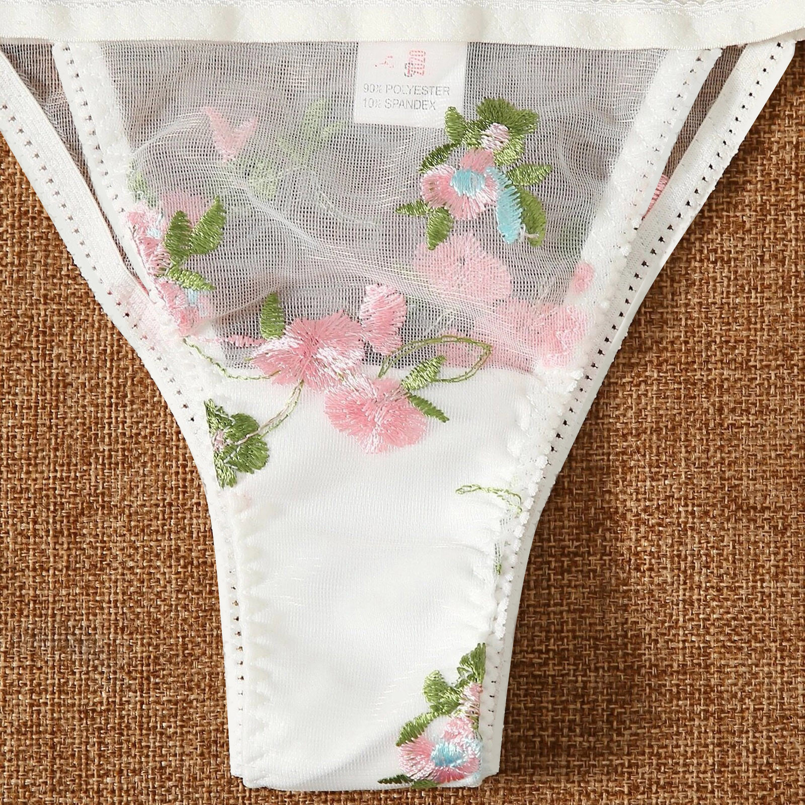 Женский комплект нижнего белья Porno, сексуальное кружевное белье с цветочной вышивкой, чувственный бюстгальтер, стринги, эротическое нижнее белье P