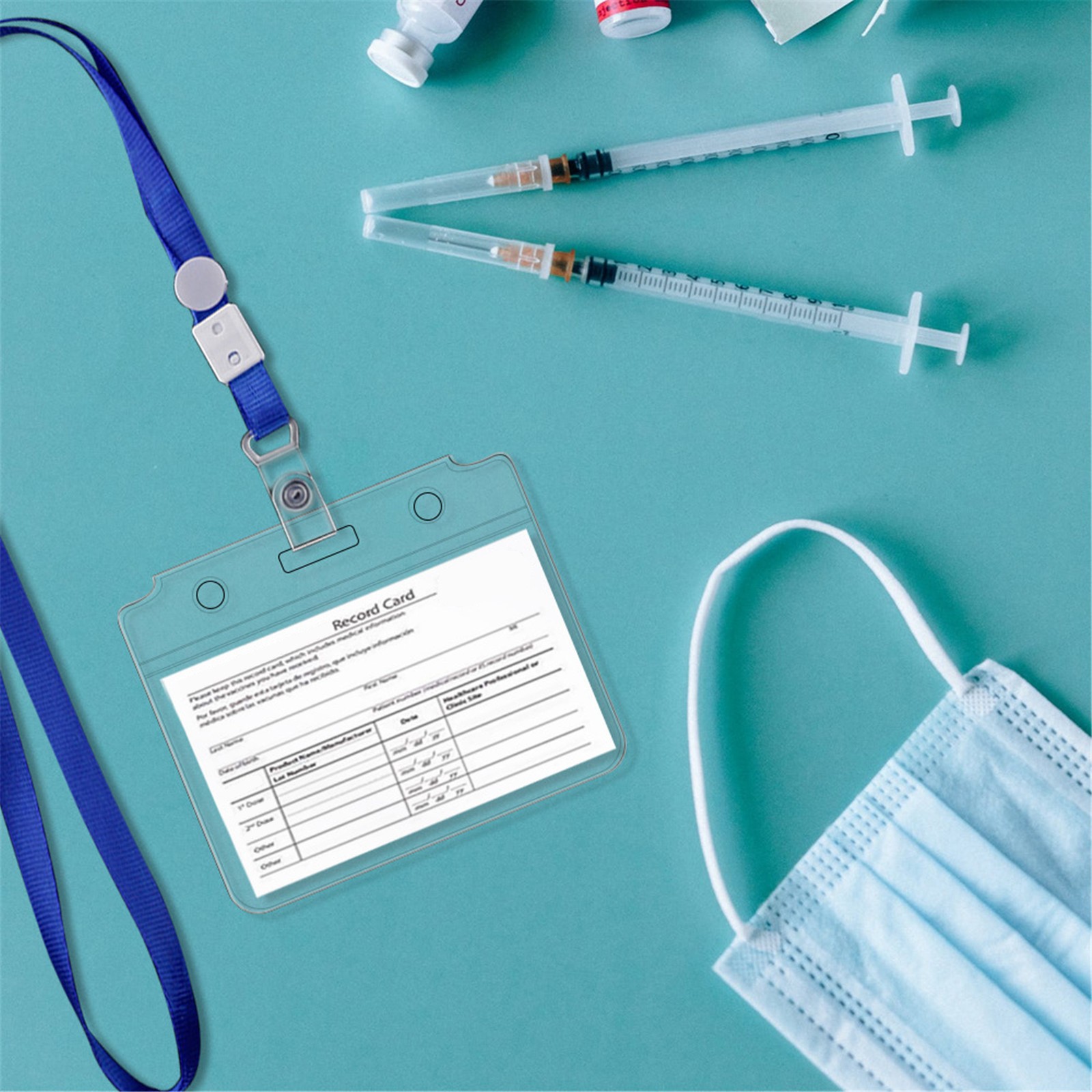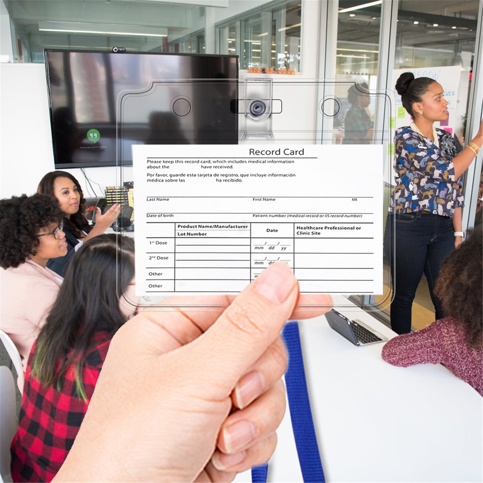 Держатель для карт прививки с готовым дисплеем в авиалиниях для быстрого доступа-Доступно для штрих-кодов и кодов контроля качества, которые будут считываться с помощью считывателя сканера через видимое прозрачное защитное окно-отлично подходит для учителя, студентов, медсестер, офисные работники, доктора, государственные служащие, полицейские, волонтеры и многое другое
