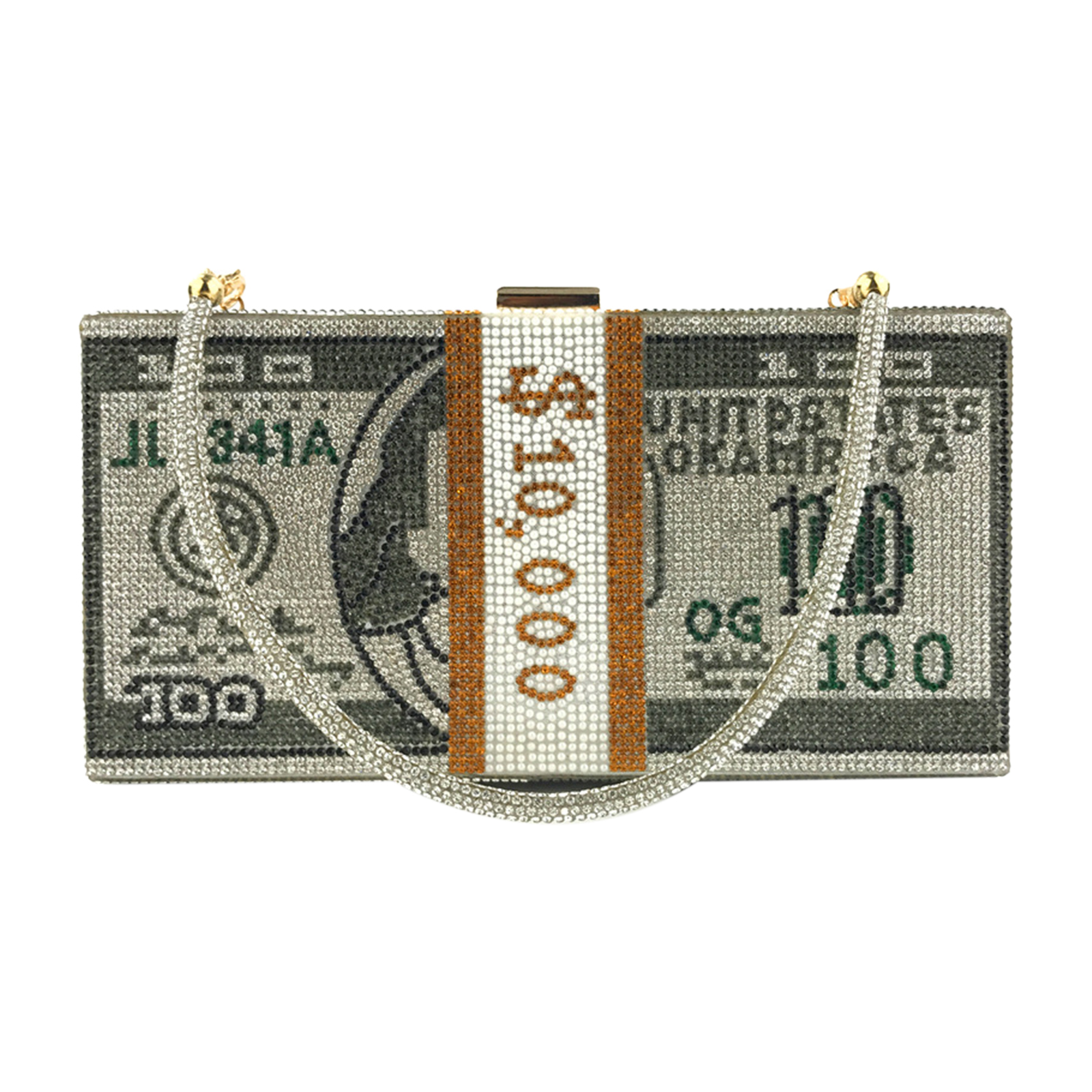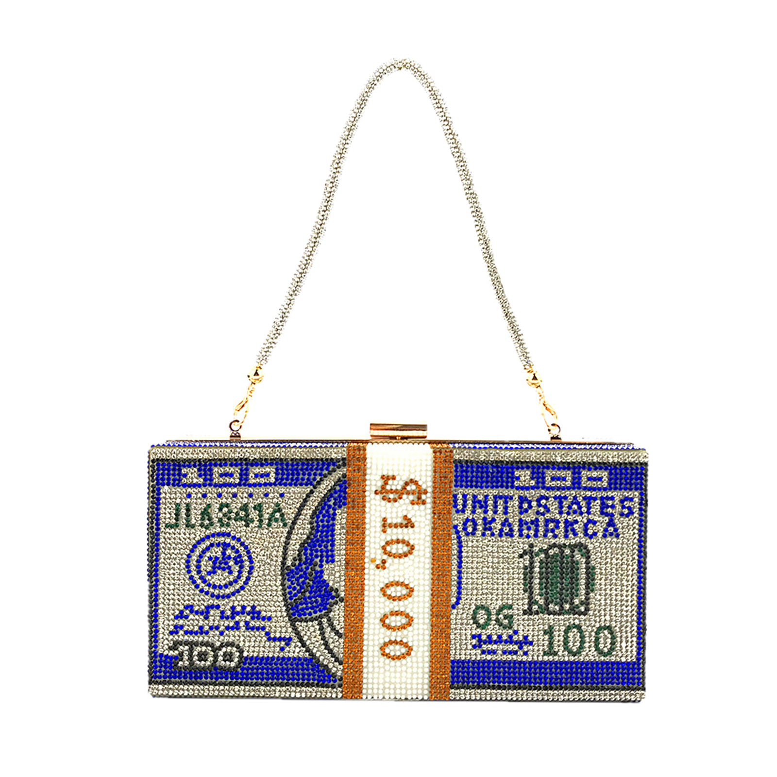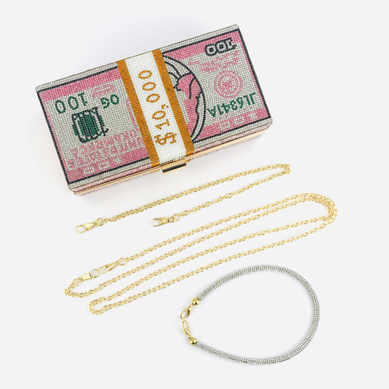 Уникальный дизайн-сочетание блестящие стразы и золотые цепи сделает вас центром мигания все время, с красивым halo; Две длины съемные цепи могут быть отрегулированы в зависимости от различных случаев. Такие как: ручной, ручной, одно плечо, кросс-боди, так что ваши действия красочные.