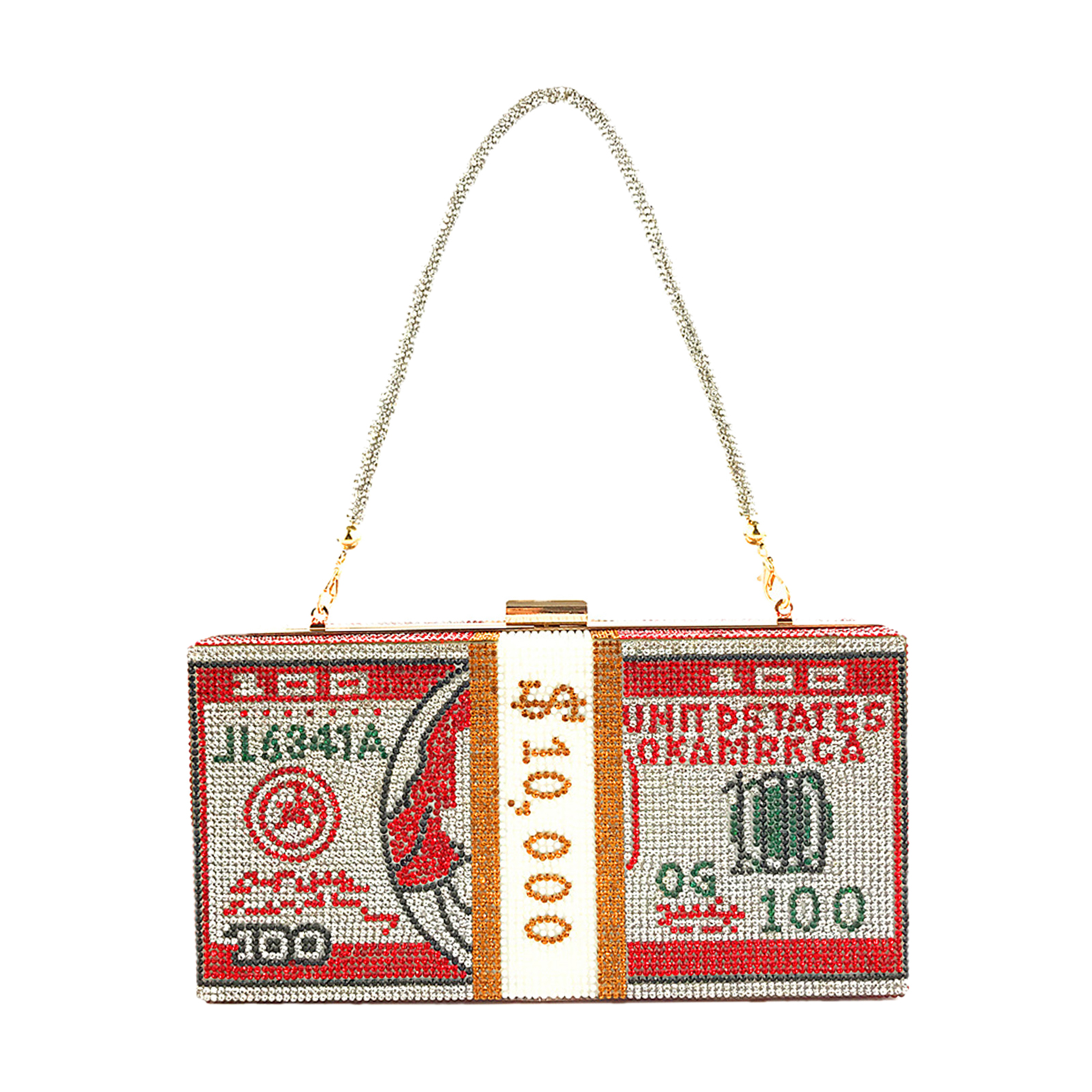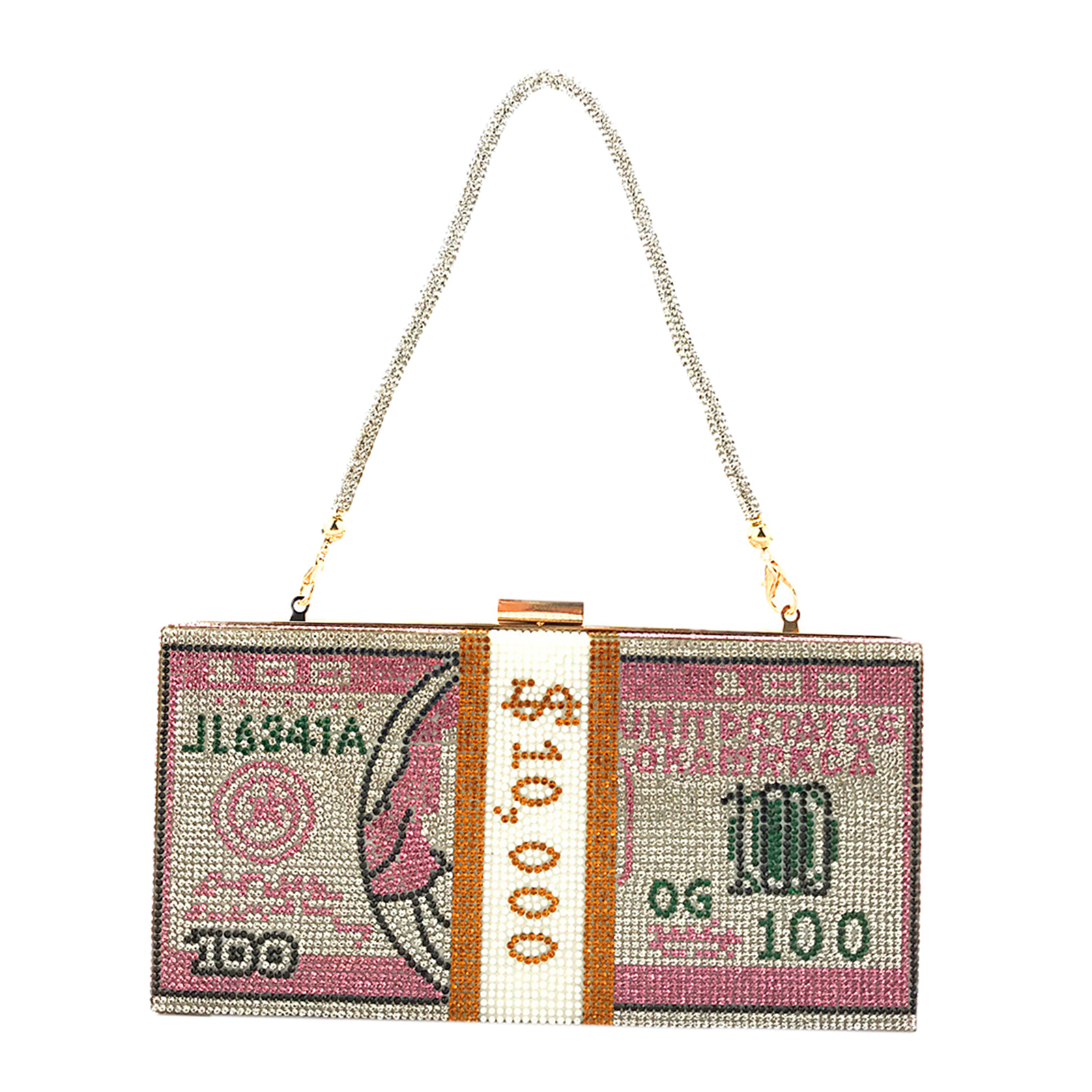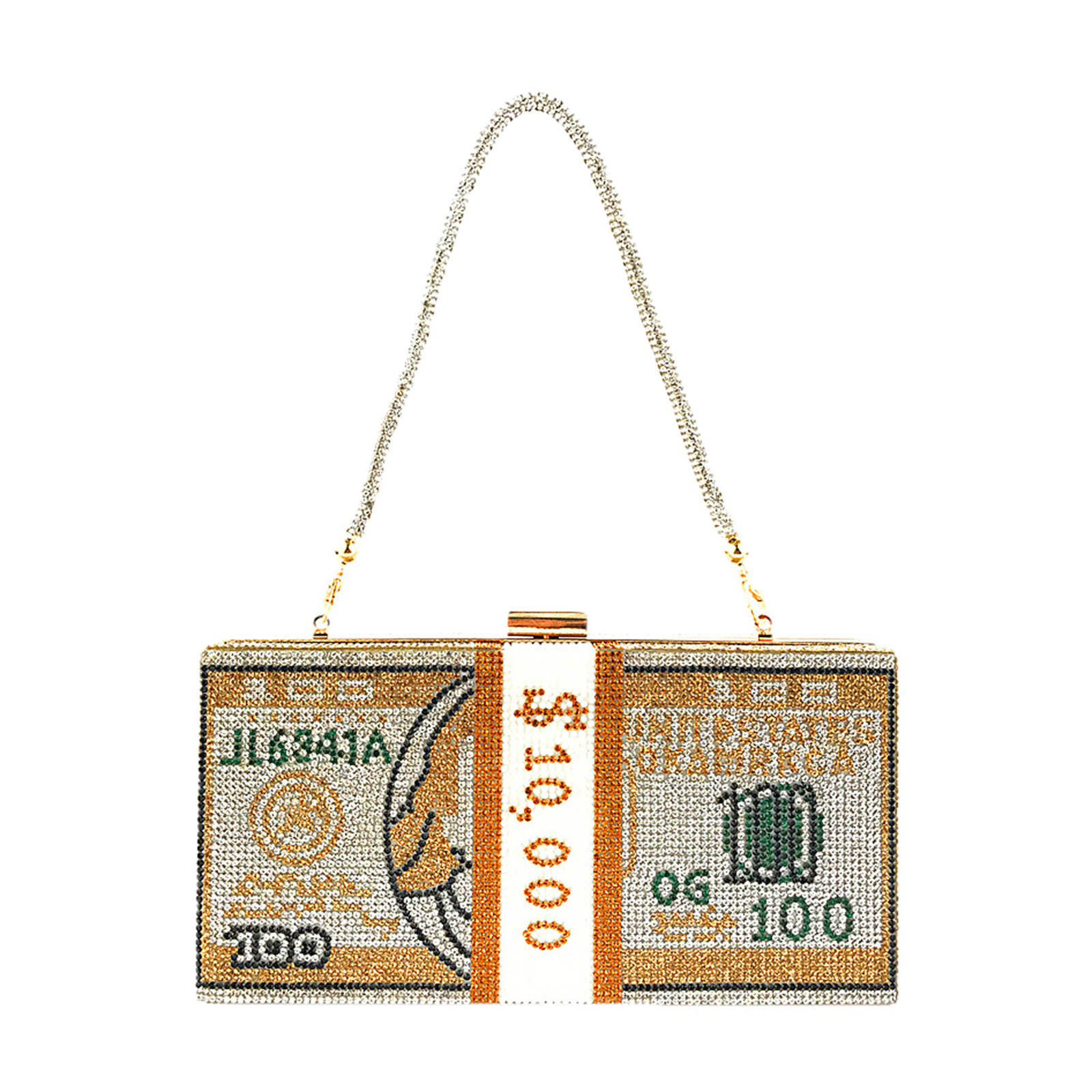 Уникальный дизайн-сочетание блестящие стразы и золотые цепи сделает вас центром мигания все время, с красивым halo; Две длины съемные цепи могут быть отрегулированы в зависимости от различных случаев. Такие как: ручной, ручной, одно плечо, кросс-боди, так что ваши действия красочные.