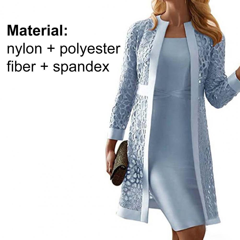 Новинка 2021, женский наряд, однотонный кружевной кардиган с длинным рукавом, Платье До Колена, комплект пальто для офиса