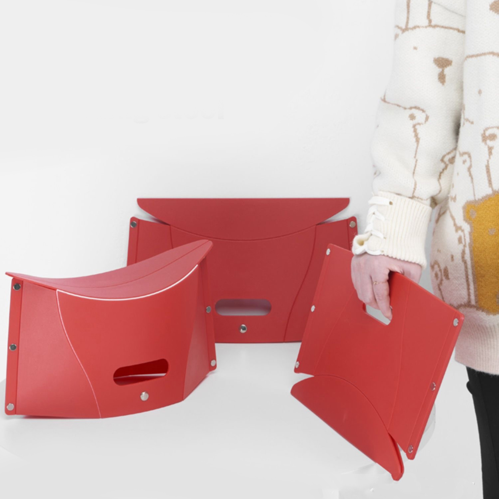 1.What is the most convenient stool you can imagine? Our foldable plastic stool will refresh your cognitive limited again. It is not only a folding stool, but also a handbag. It is light and easy to use, strong and durable.