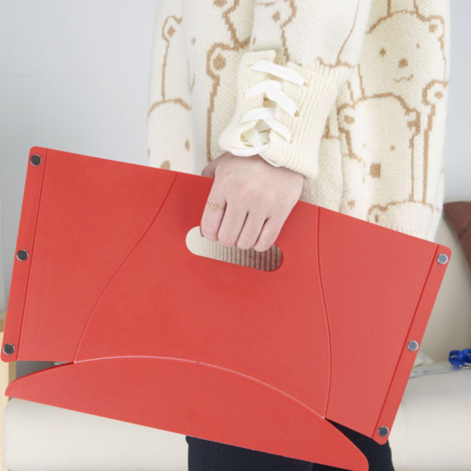 3. It can be used as a folder or a shopping bag. Imagine using this multifunctional stool to carry some fruits or food for a picnic. During a picnic, it can instantly transformi into a small stool. It does not require any assembled and foldable directly, it is so magical!