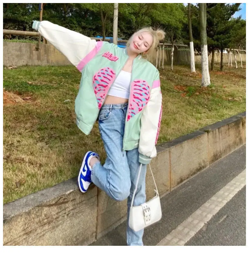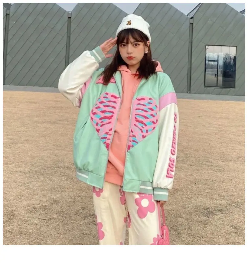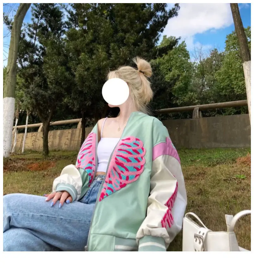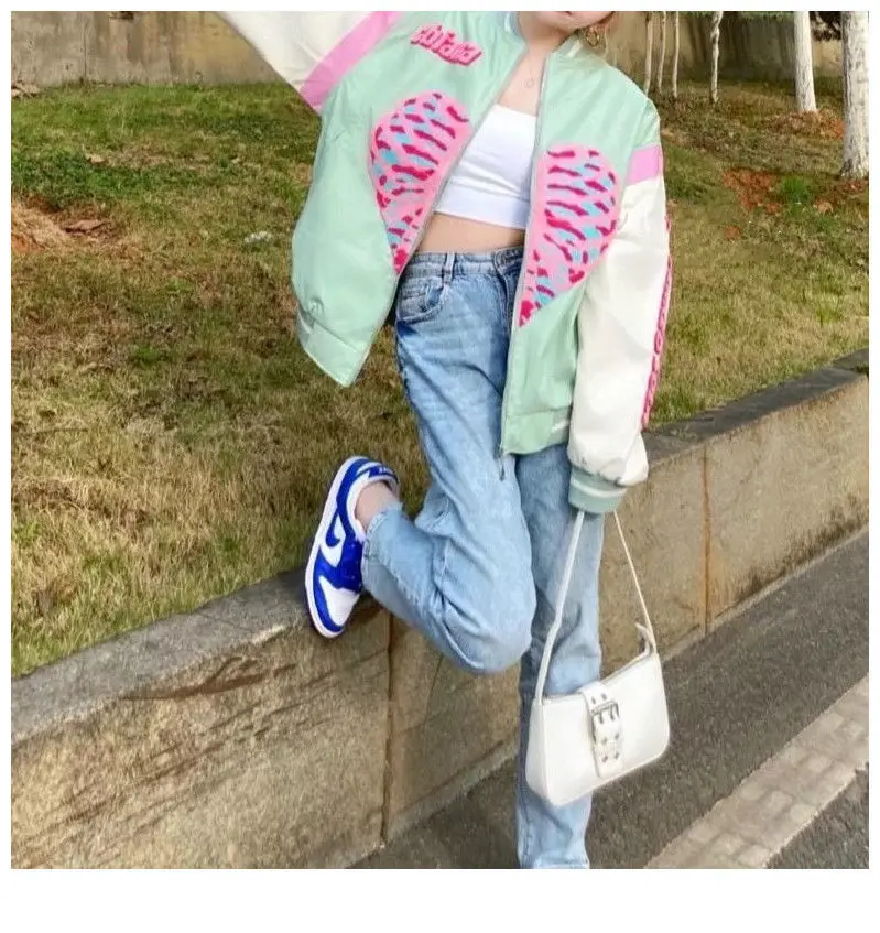 [Возвратная упаковка груза] Guochao love vibe бейсбольная куртка Женская Студенческая 2021 весна и осень новая модная американская винтажная куртка
