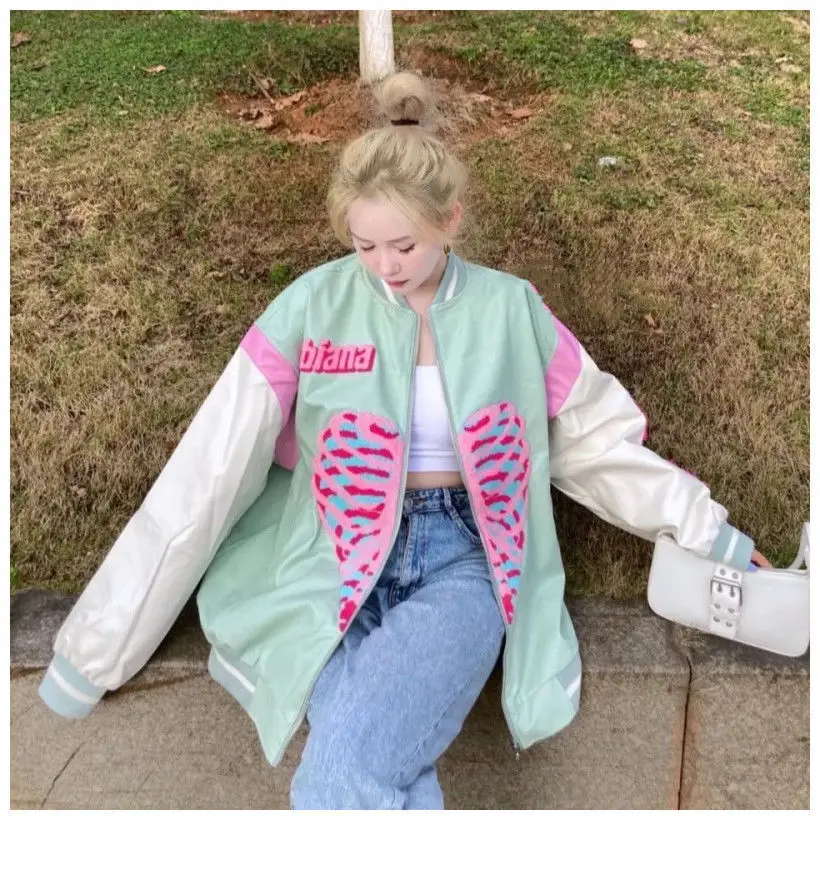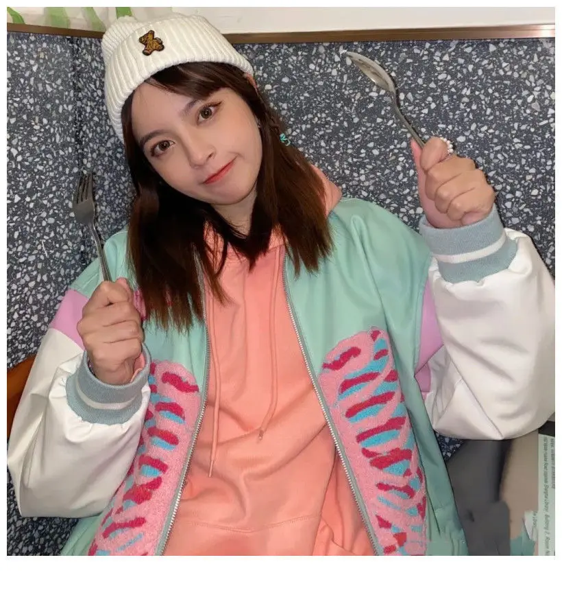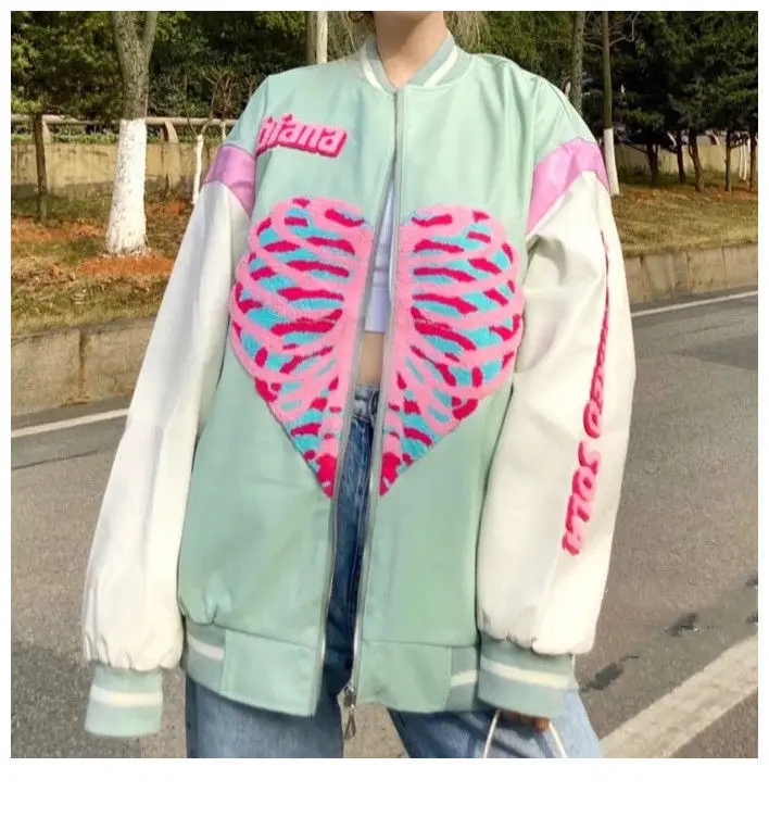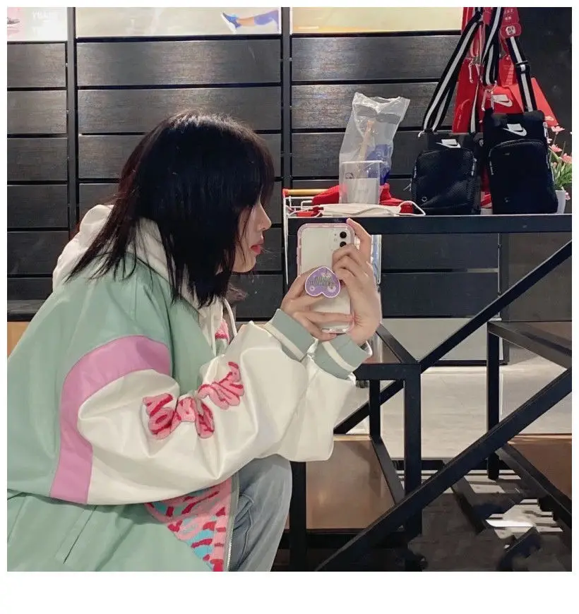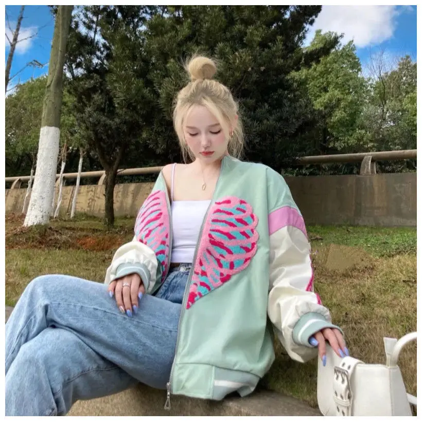 [Возвратная упаковка груза] Guochao love vibe бейсбольная куртка Женская Студенческая 2021 весна и осень новая модная американская винтажная куртка