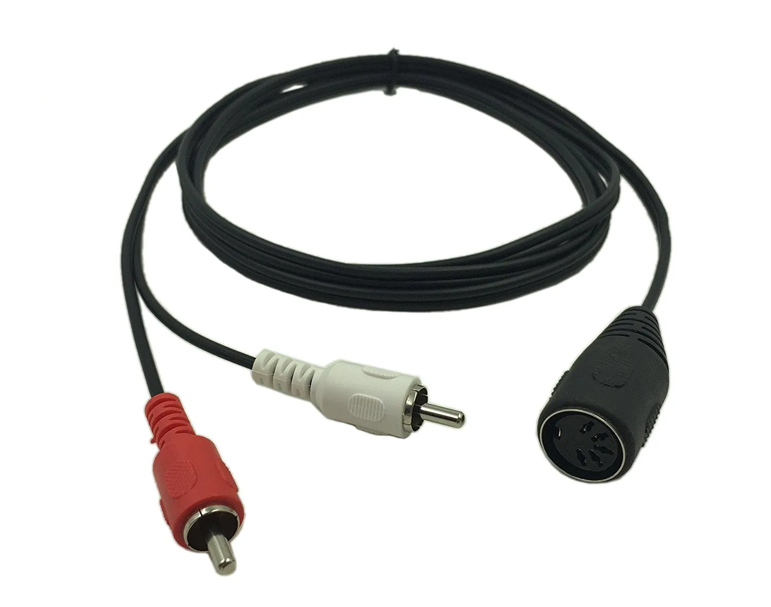 Connectors: Metal 5-pin Din male plug on one end - Metal 2 RCA male on other end. 5 pin DIN to RCA cable is perfect for connecting a CD player, VCR, DVD, Phono or LD to a Bang & Olufsen, Naim, Quad or any other European type stereo equipment with Din 5 Connector. Oxygen-Free Copper (OFC) conductors for enhanced signal clarity. OFC spiral shields for effective EMI and RFI rejection and flexibility. Premium cable engineered with molded strain relief connectors for durability and grip treads for easy plugging and unplugging