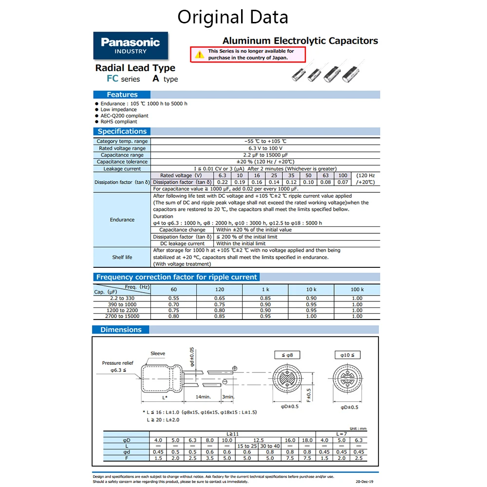 ● Бренд: Panasonic ● Допуск емкости: +/- 20% ● Происхождение: Малайзия ● Серия: FC ● Спецификация: 470 мкФ 63В ● Срок службы: около 5000 часов ● ESR :55 mOhms ● Расстояние между ногами: 5 мм, диаметр ножки 0,8 мм ● Ток пульсации: 2,09 А ● Размер: 12,5x30 мм ● Термостойкость: от-55 ℃ до + 105 ℃ ● Вес: около 6 г/шт.