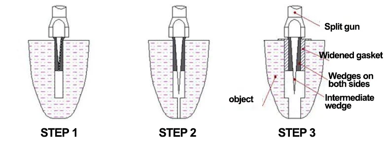Разделительная машина использует масло высокого давления в качестве источника энергии и умело применяет косой клиновидный принцип, чтобы сделать разделяющую силу достигать сот тонн, даже тысяч тонн, так что тысячи тонн валунов могут быть легко разделены за несколько секунд, чтобы отделить твердую и большую руду от горы.