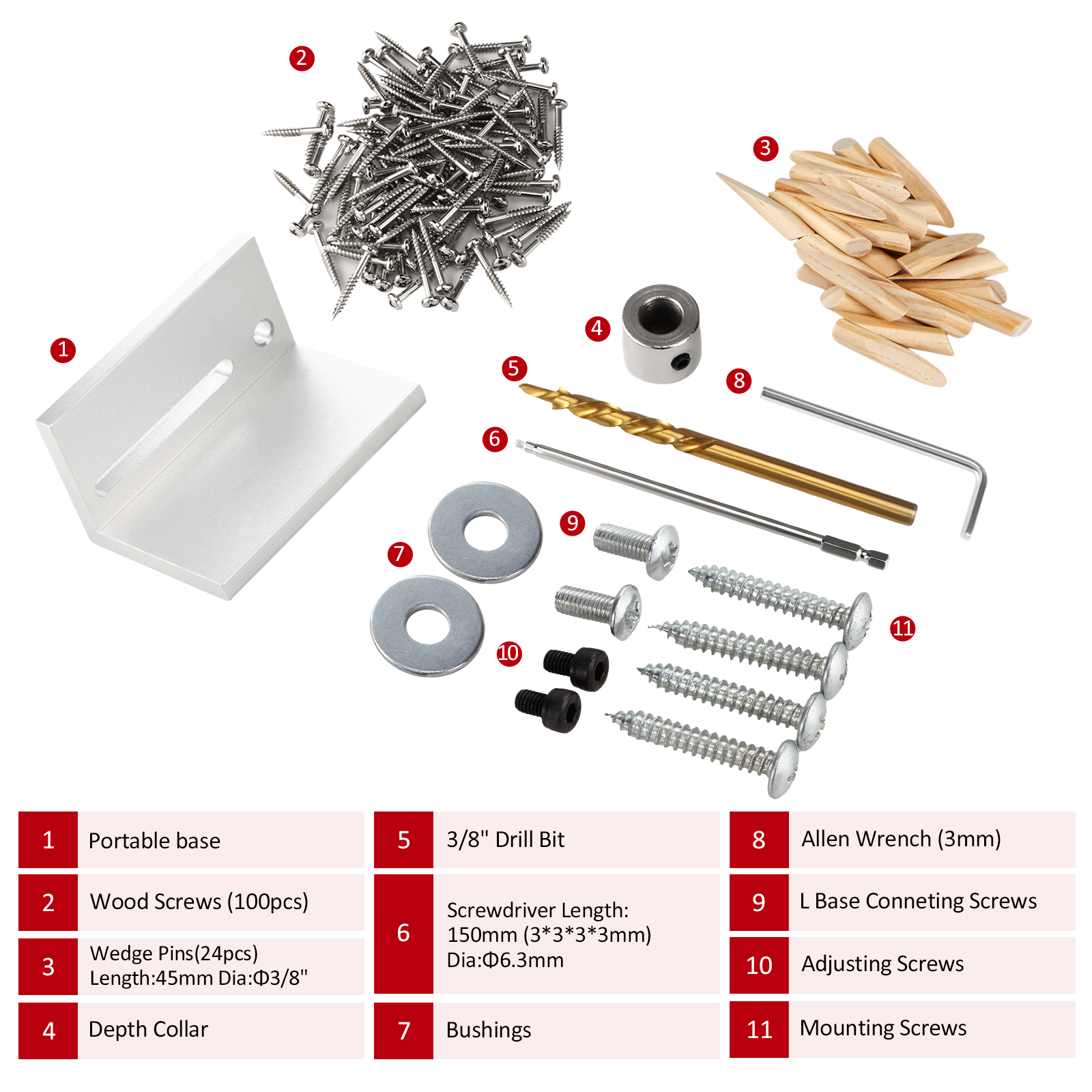 Этот комплект предоставит вам аксессуары, такие как винты, сверла, гаечные ключи, ободки, чтобы помочь установить правильную глубину. Без винтов Phillips, наши винты и бит Robertson (квадратный бит) имеют почти нулевой шанс на зачистки винтов. Спасибо P. L. Robertson в Милтон, Онтарио, Канада, изобрел этот отличный винт в 1908 году