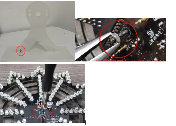 Screw the power supply board, motor, and casing together with screws, with the casing in the middle, insert the screws from the power supply board, and then use oil and other lubricating oil to add smoothness to the three silver circles