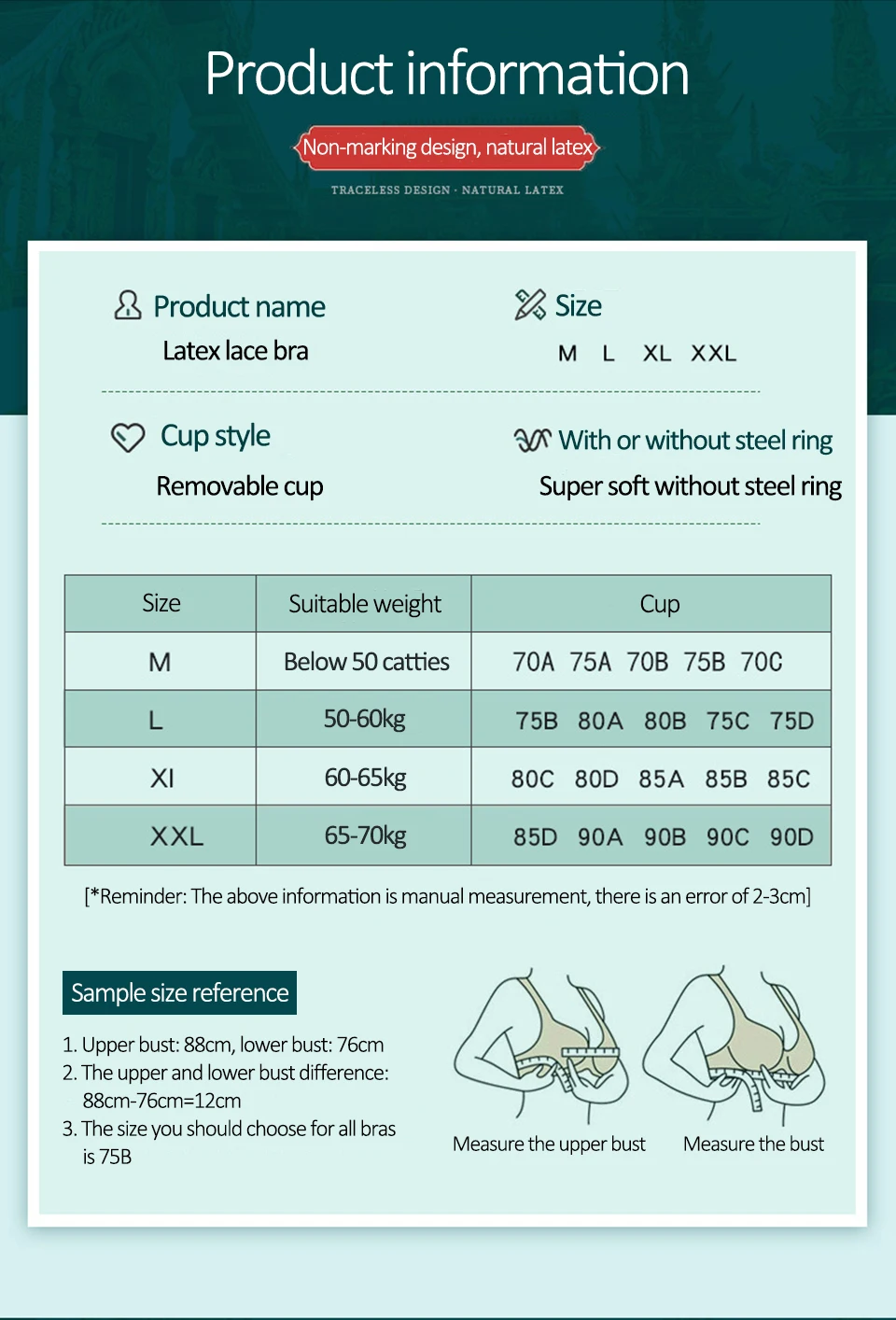 Изготовлено из натурального латекса, извлеченного из резиновых деревьев в Таиланде, без каких-либо синтетических волокон, 5D формованные пены для ваших девочек с амортизацией, комфорт, воздухопроницаемость, И мягкость, которая предотвращает трение и раздражение кожи во влажную и жаркую погоду. Этот беспроводной бюстгальтер поддерживает и выравнивает контуры ваших девочек с использованием латексных чашечек 5D, мягких лямок, широкой боковой и u-образной задней панели против провисания. С эластичной тканью, которая дышит и движется вместе с вами, она будет соответствовать вашим изгибам, а также сглаживает выпуклости для ночевки, подчеркивающего силуэт! Удобная, поднимает и поддерживает использование латексных формованных чашек 5D, мягких лямок, широкой боковой и u-образной задней панели для максимального комфорта при ношении. Приподнимает, подчеркивает и контурит ваших девочек против провисания. . Бесшовная конструкция без швов сглаживает боковые и задние выпуклости, чтобы создать Силуэт без рукавов под одеждой.
