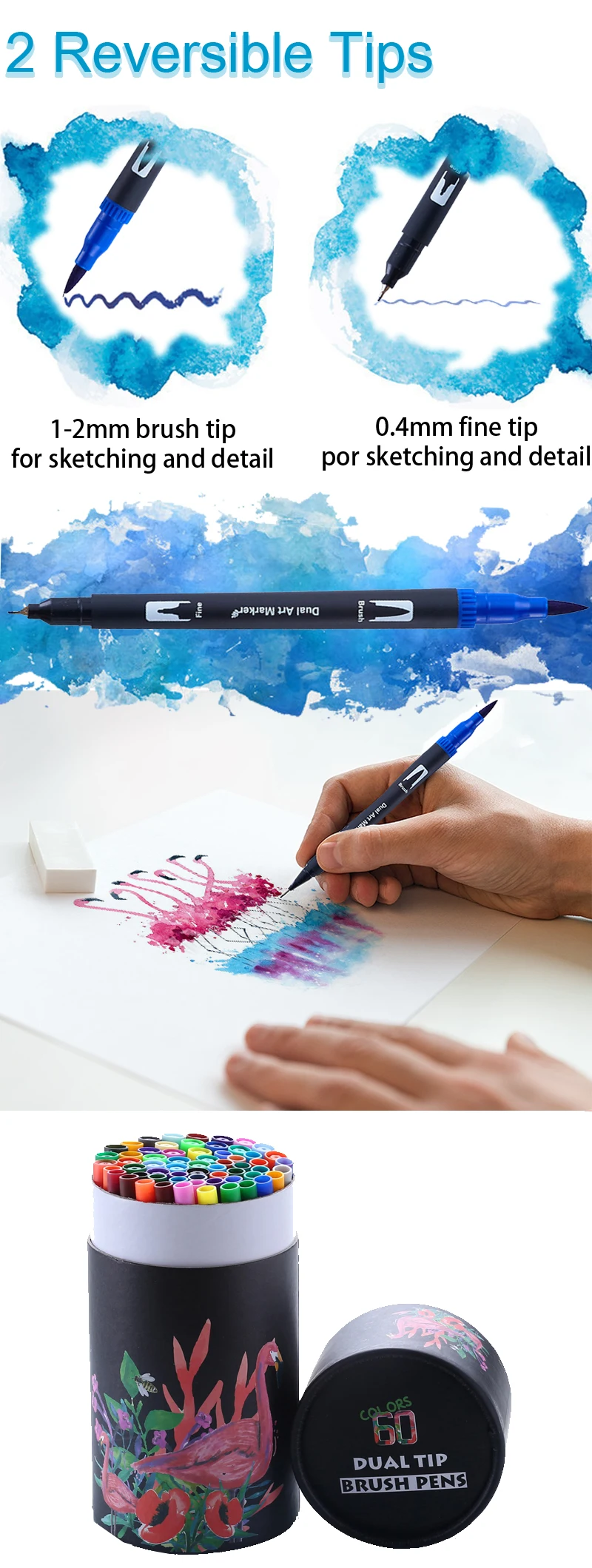 ★Двойные наконечники: щетки наконечник для затенения и окраски; 0,4 мм Классическая приковывающая взгляд наконечник для обозначения границ и деталь. Таким образом, вы получаете как цветные маркеры кистей, так и красочные тонкие ручки-вкладыши, которые являются хорошими художественными ручками для детей и взрослых.