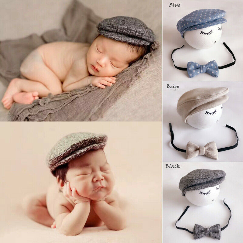 Шапка-бини для новорожденных мальчиков, наряд для фотосессии, хлопковые однотонные шапки с галстуком
