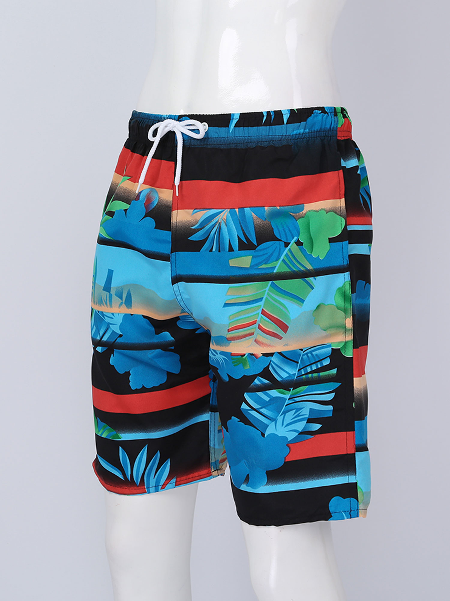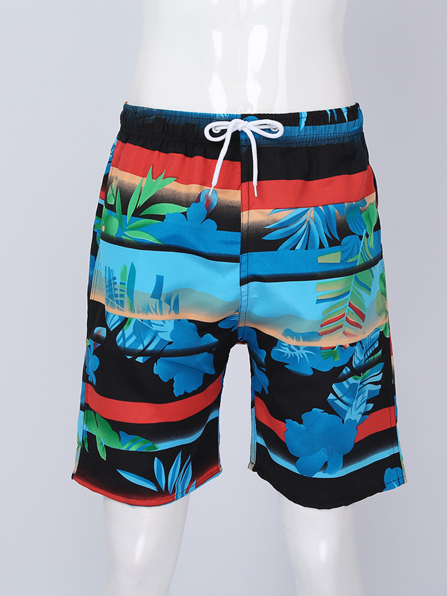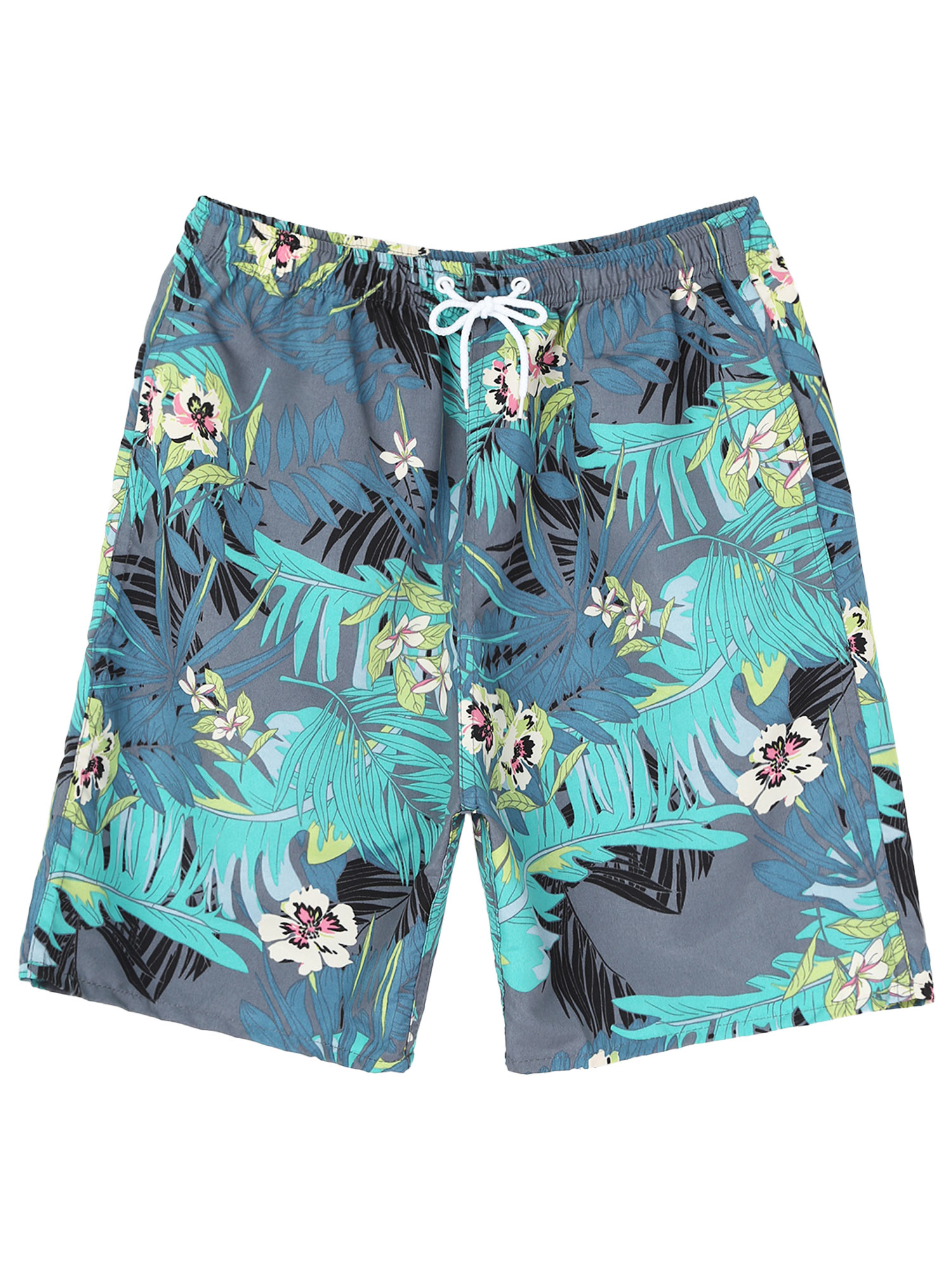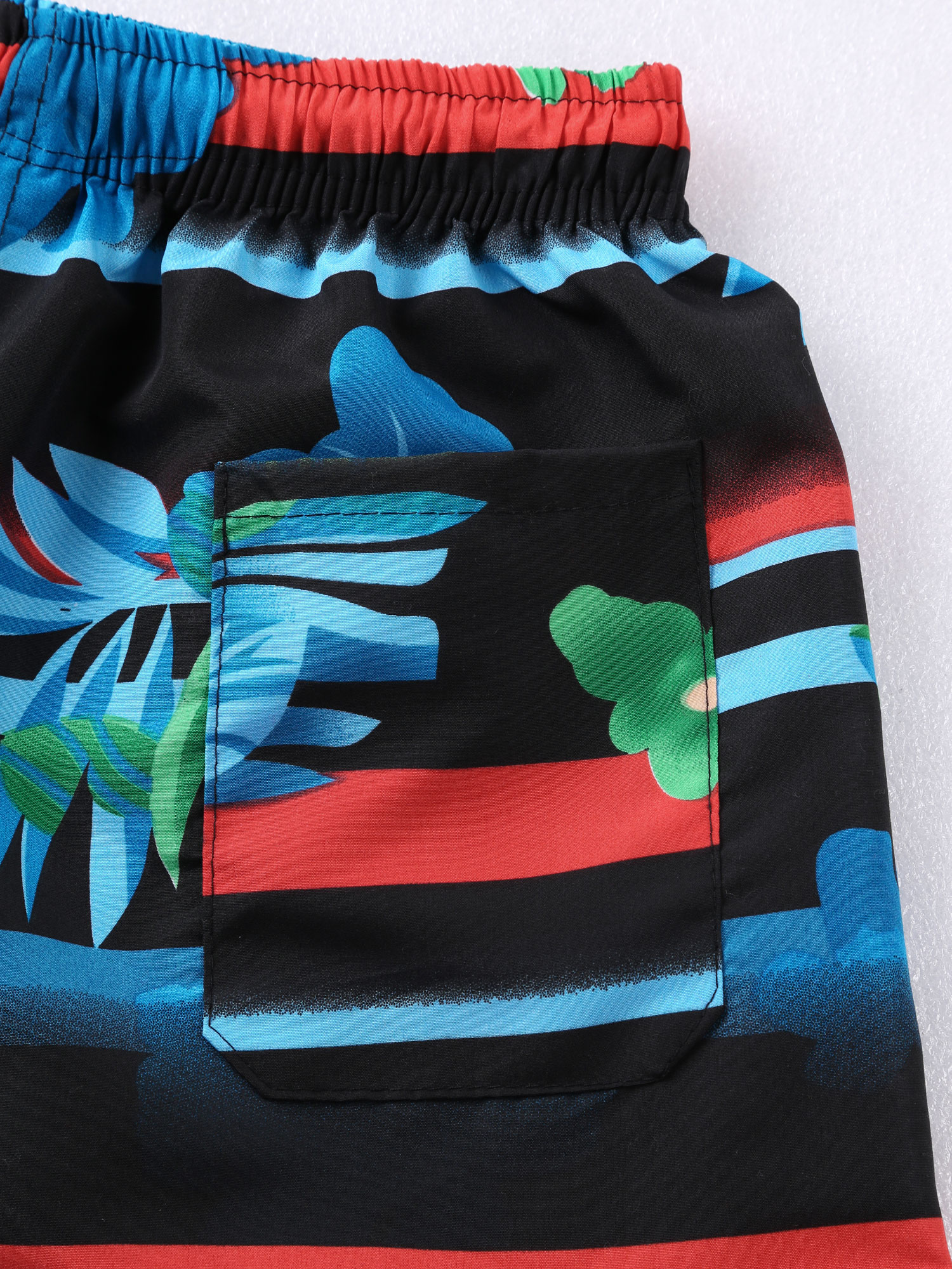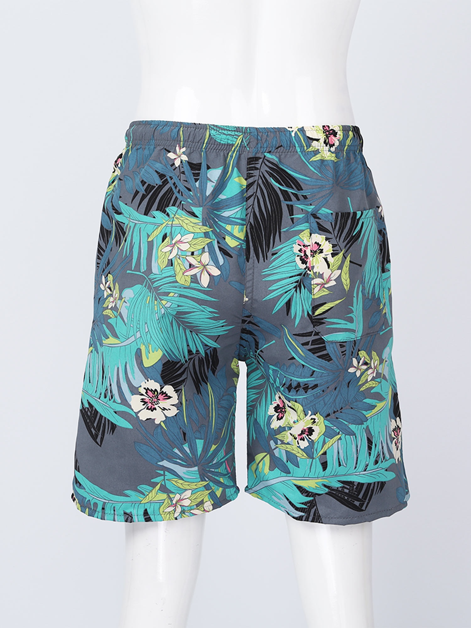 Мужские повседневные Гавайские пляжные шорты с цветочным принтом и эластичным поясом на шнурке, плавки с карманами.