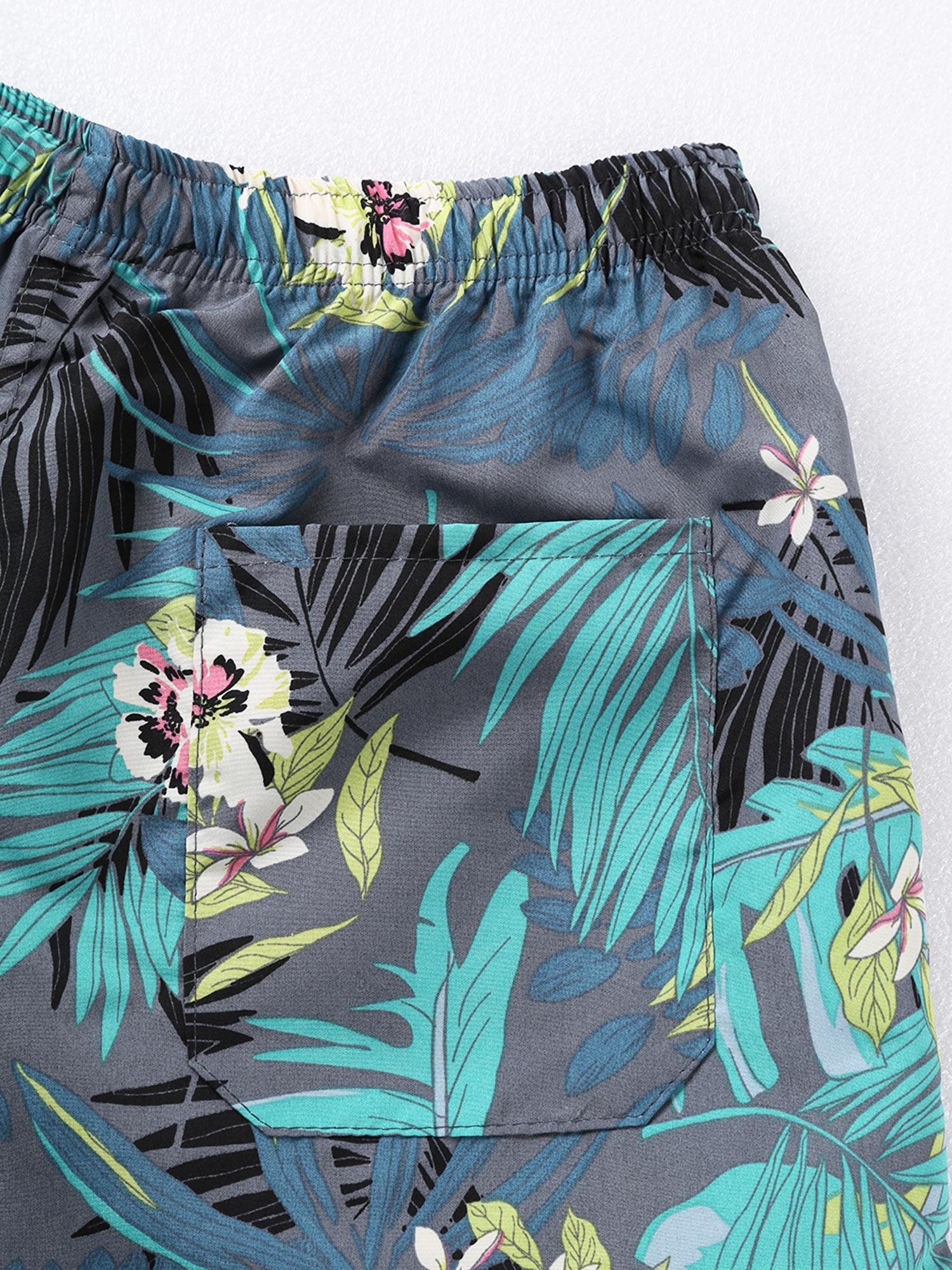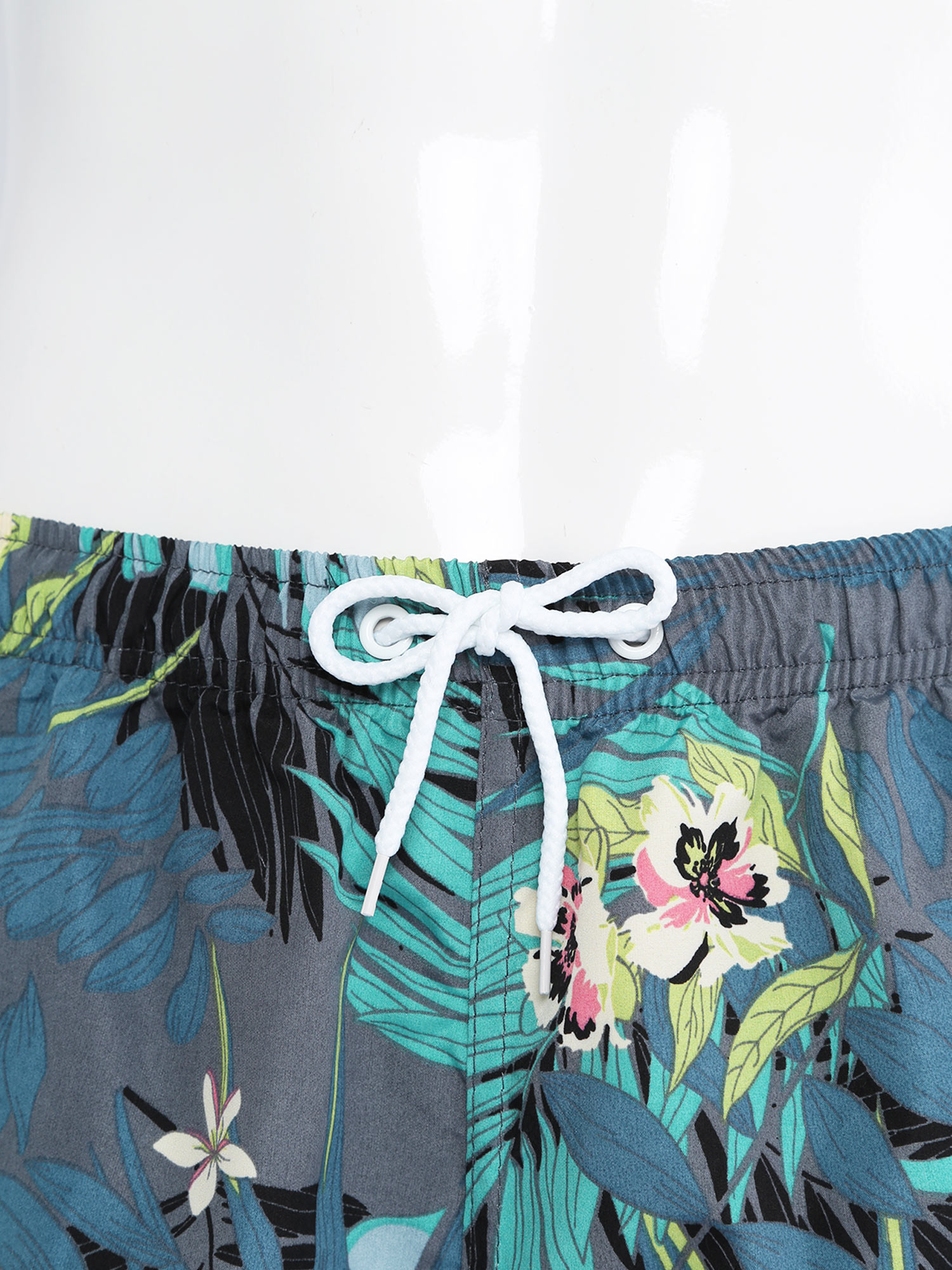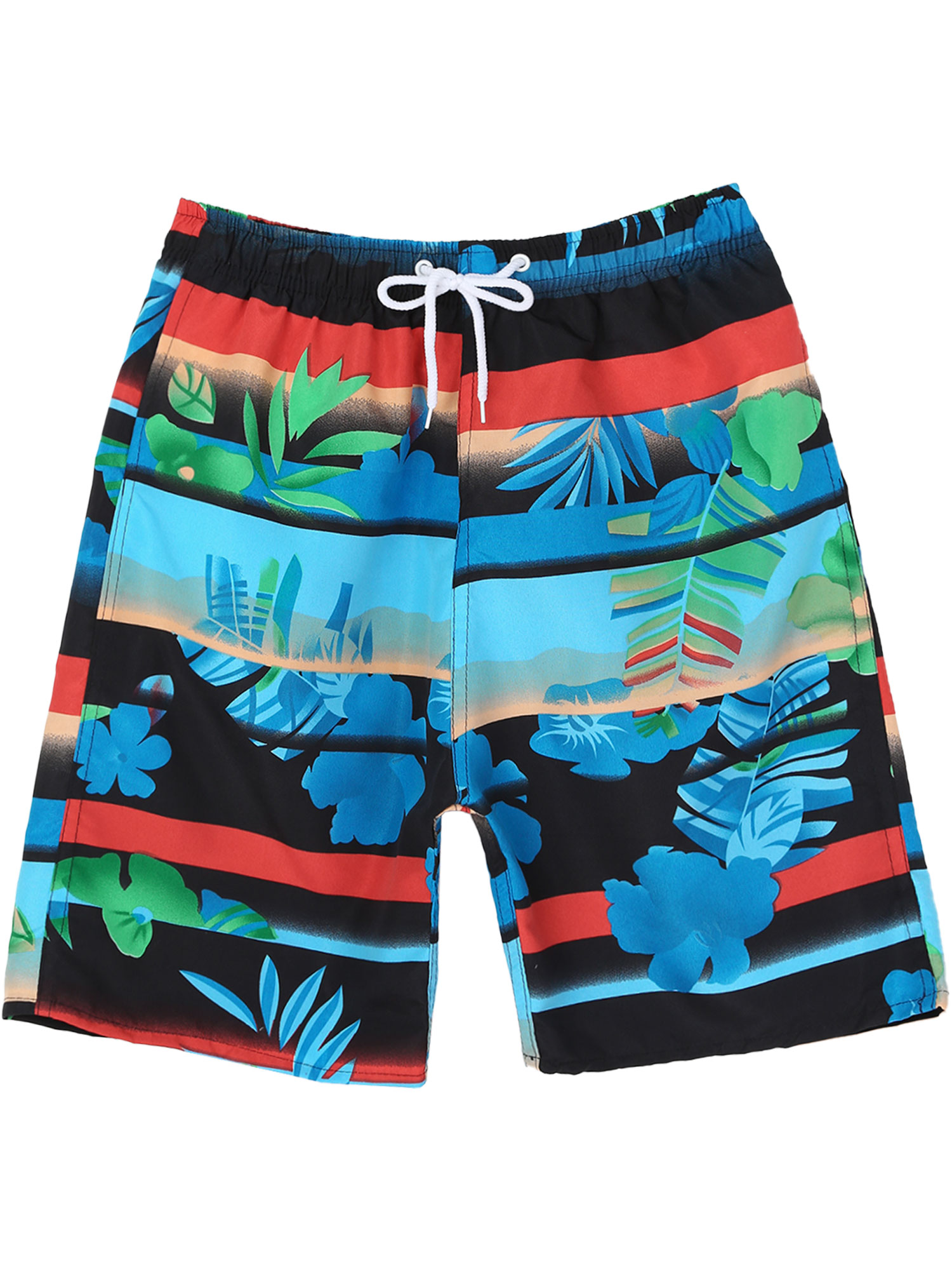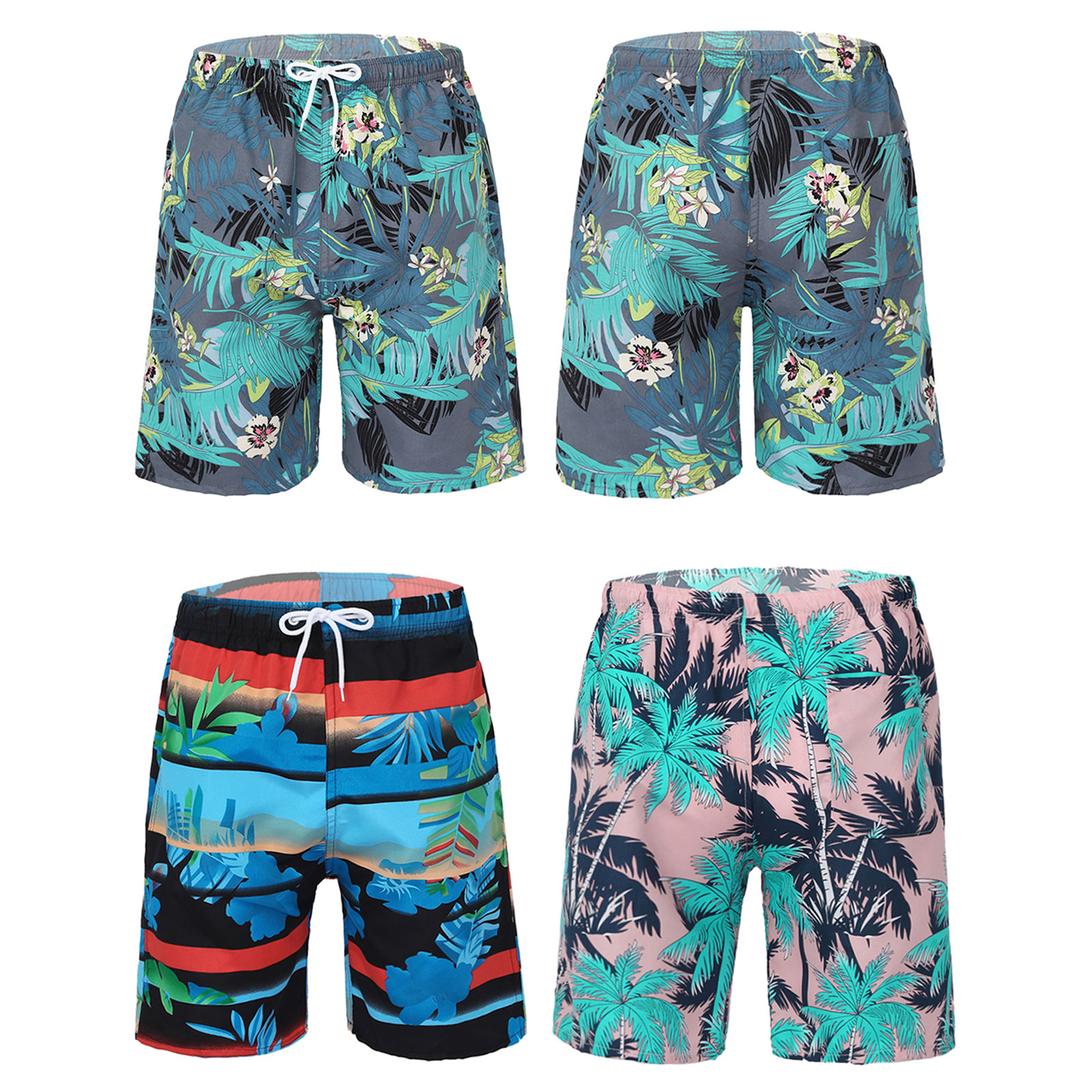 Мужские повседневные Гавайские пляжные шорты с цветочным принтом и эластичным поясом на шнурке, плавки с карманами.