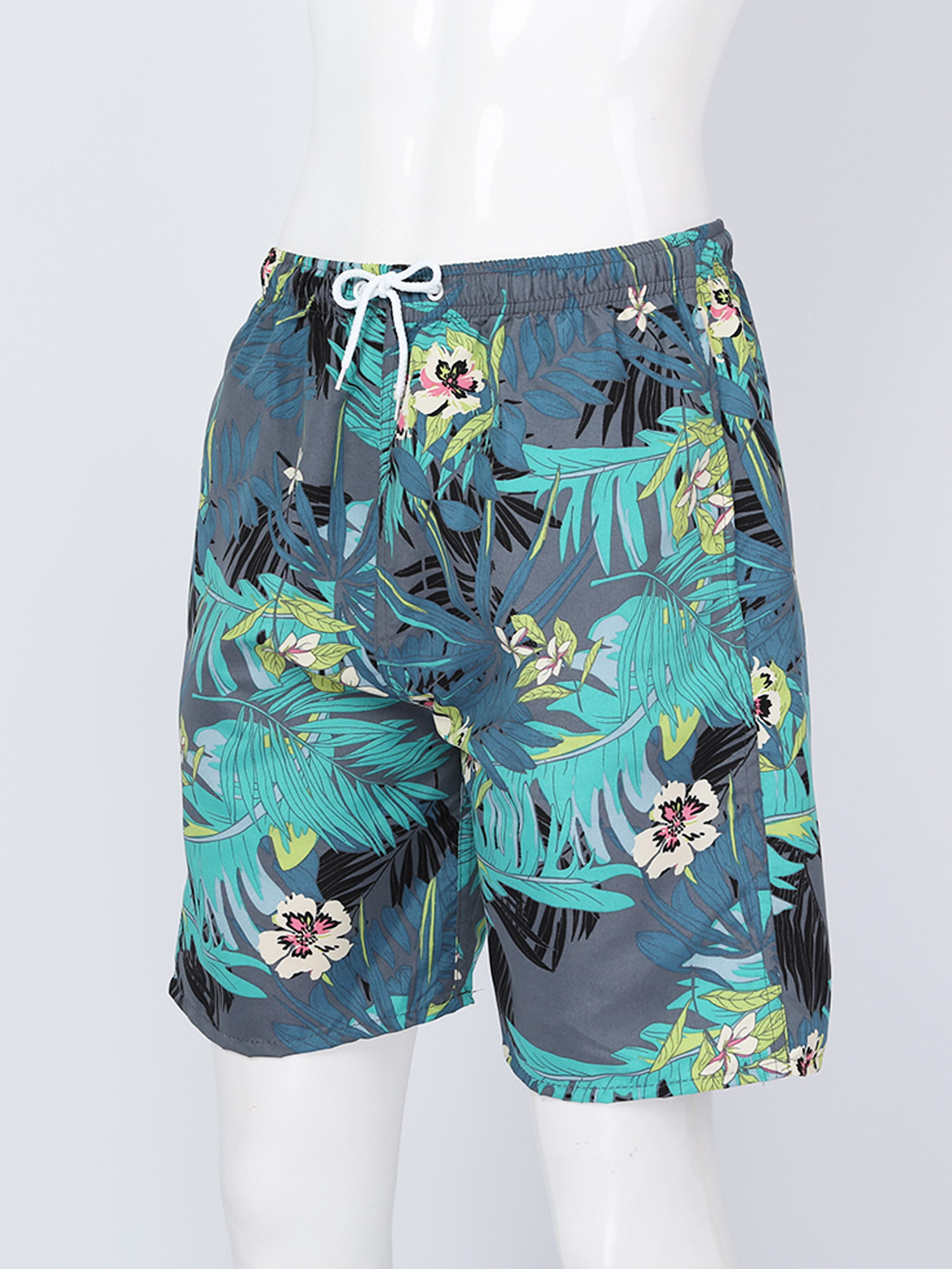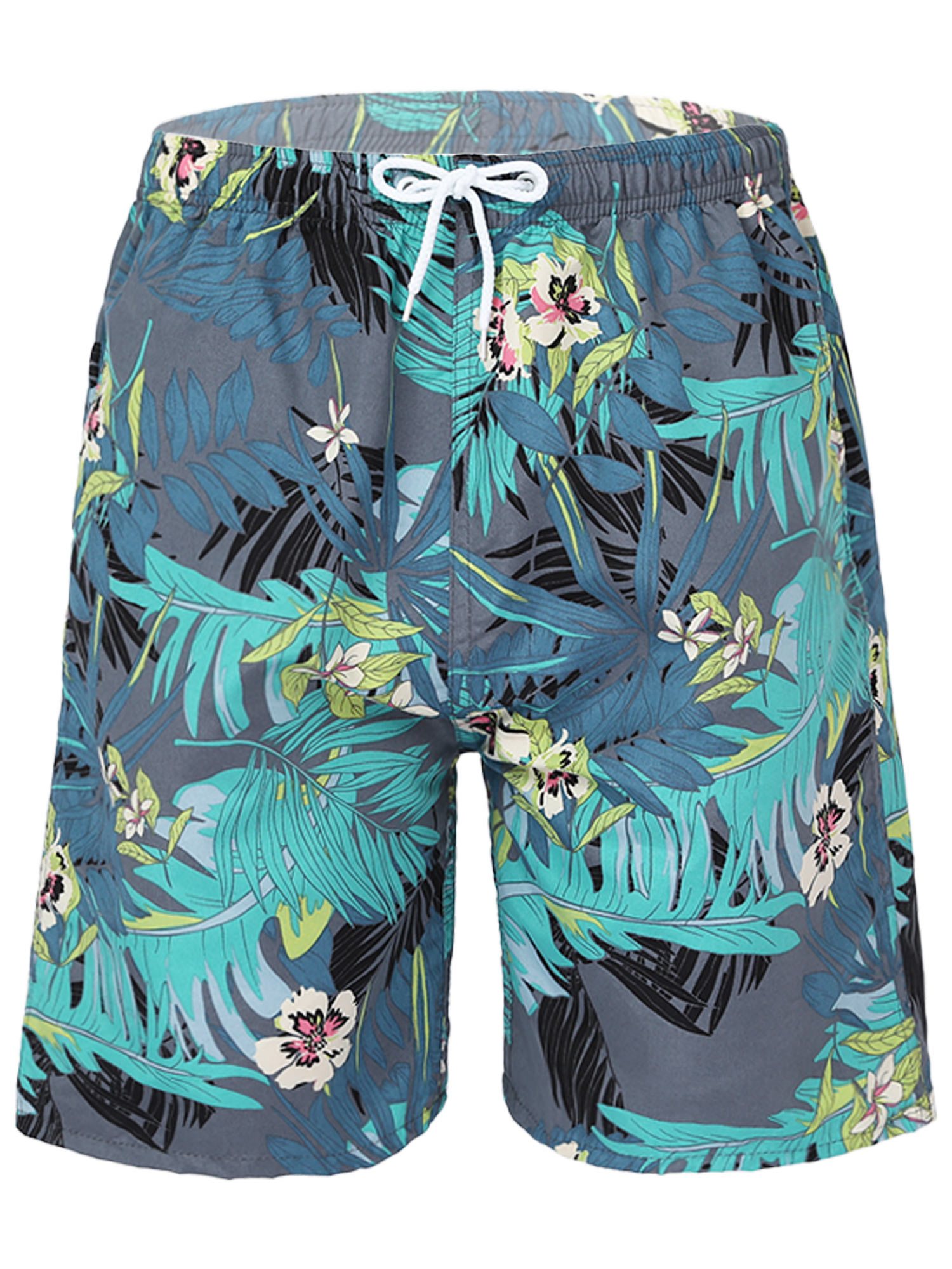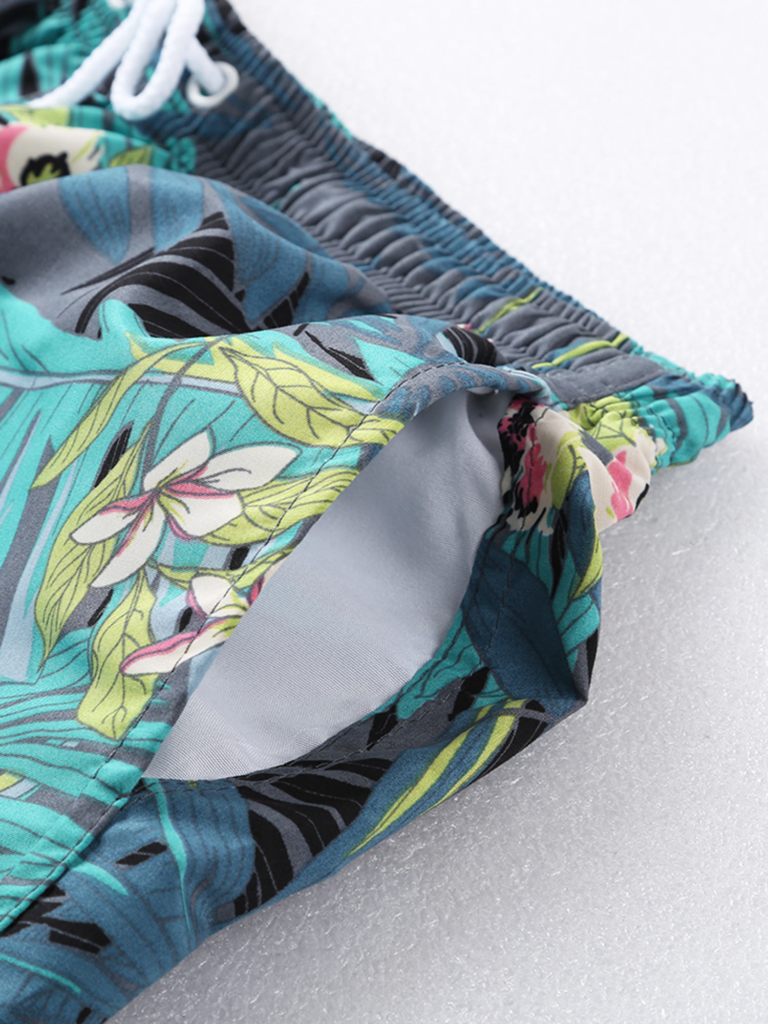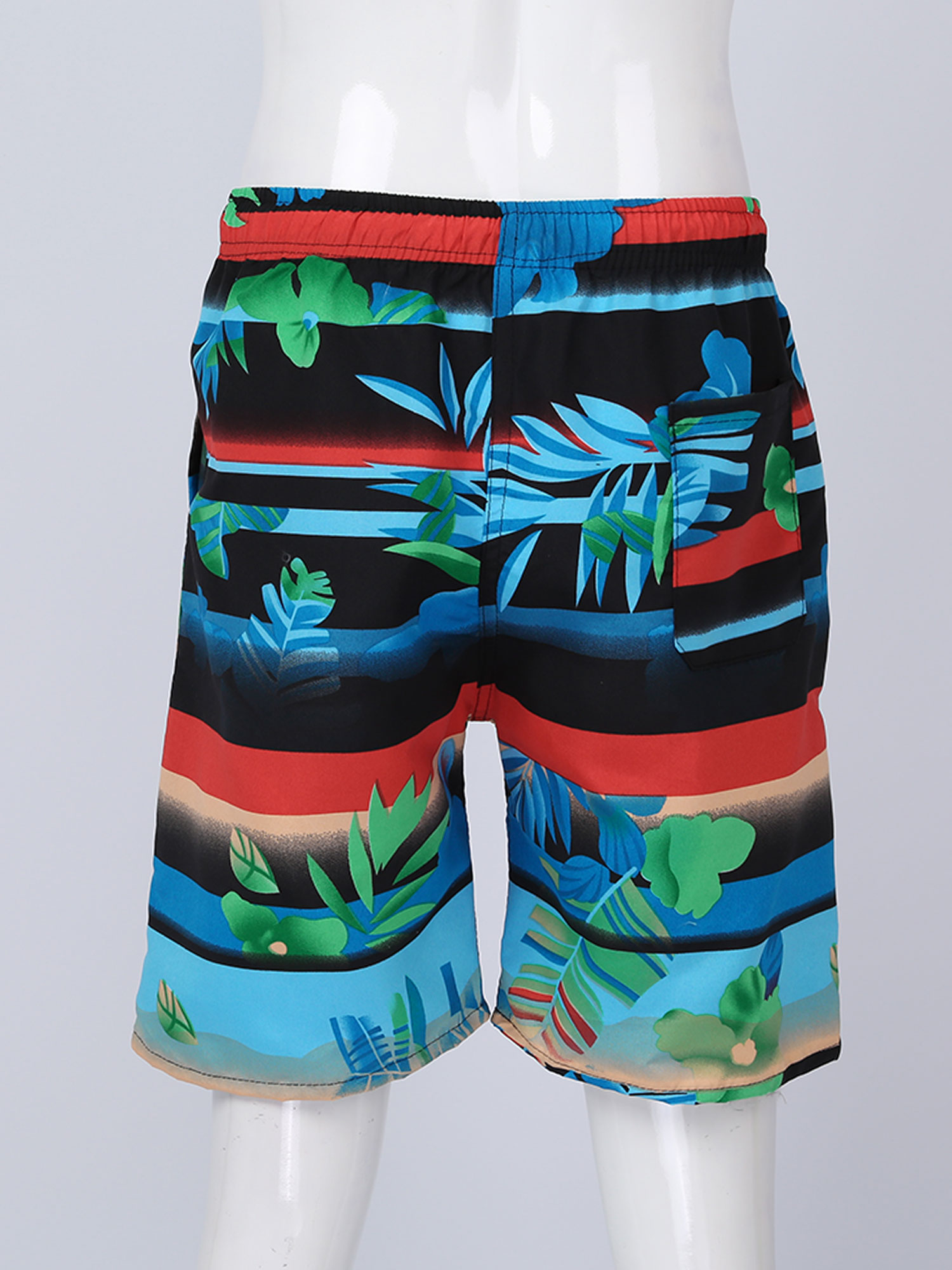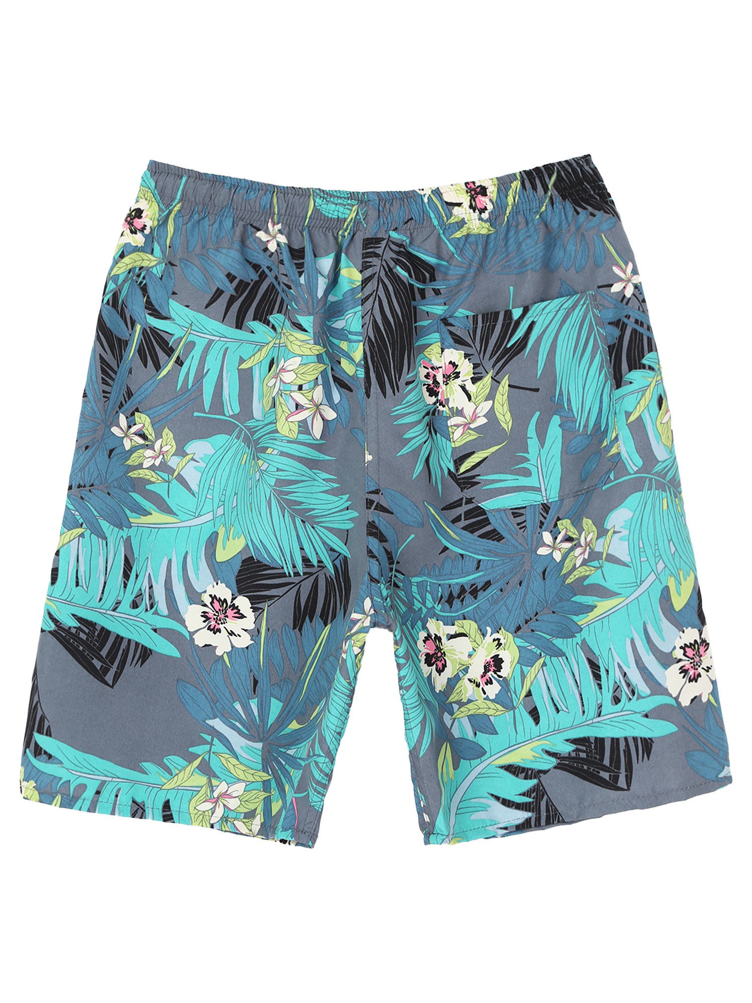 Мужские повседневные Гавайские пляжные шорты с цветочным принтом и эластичным поясом на шнурке, плавки с карманами.