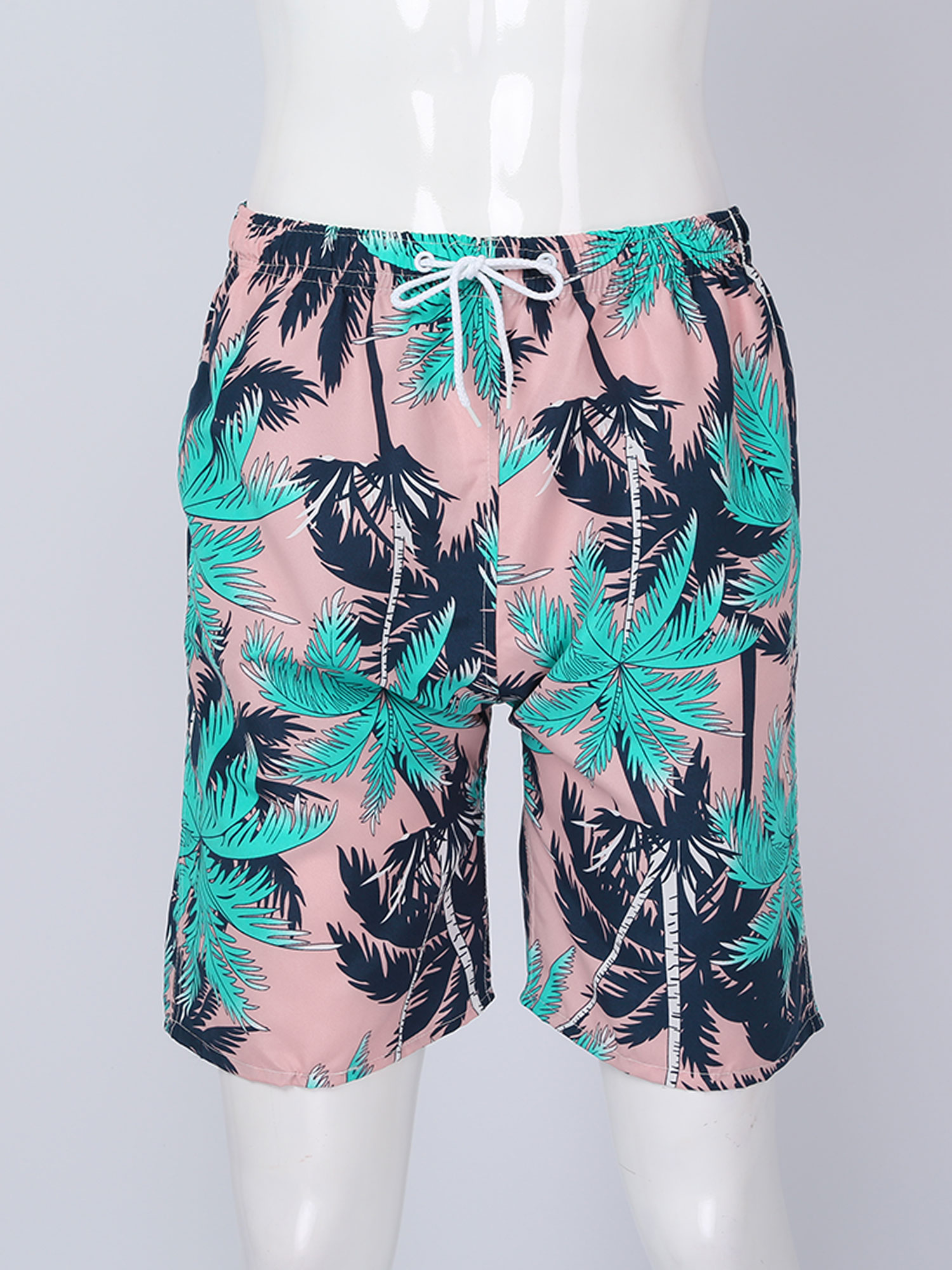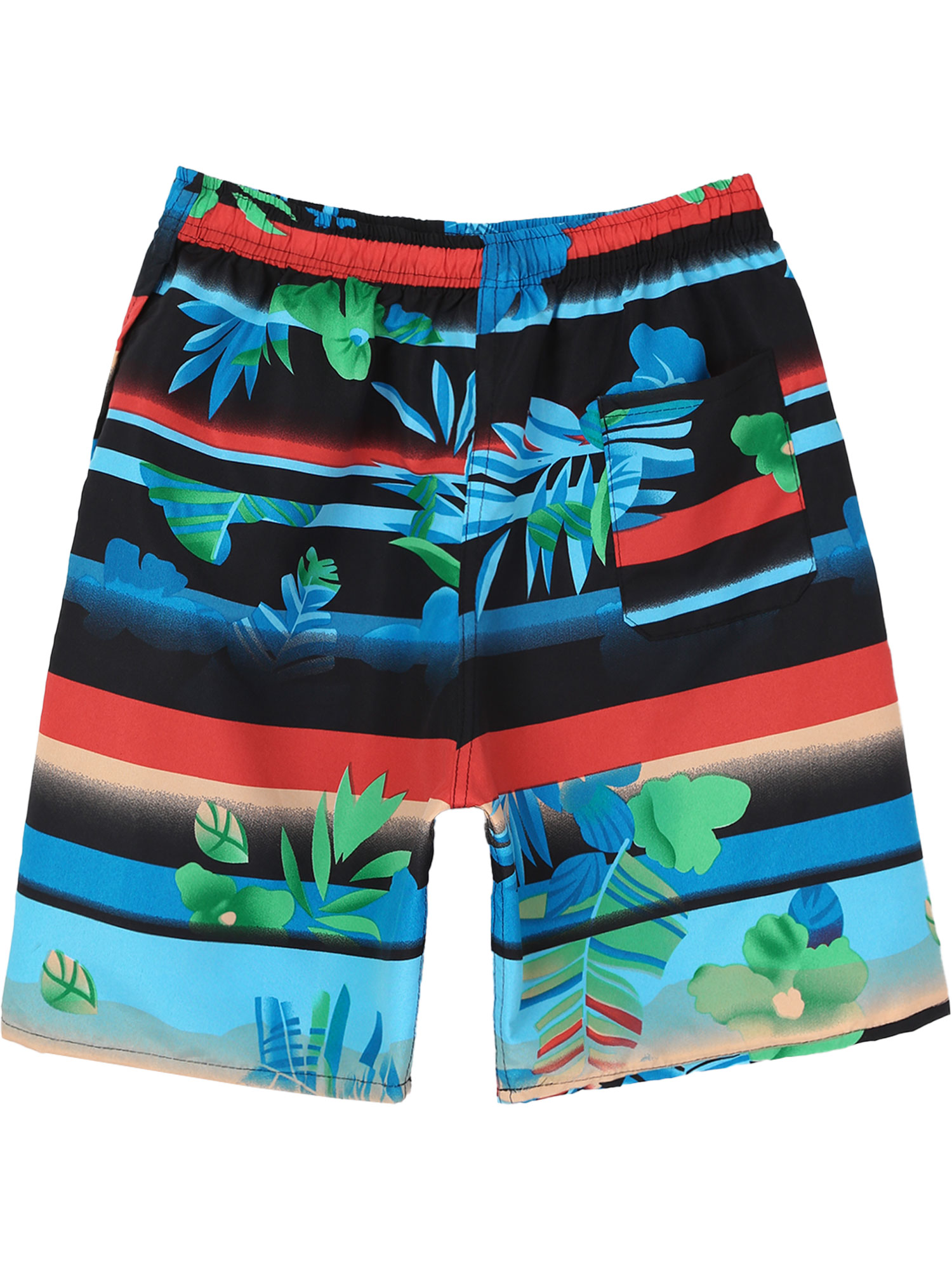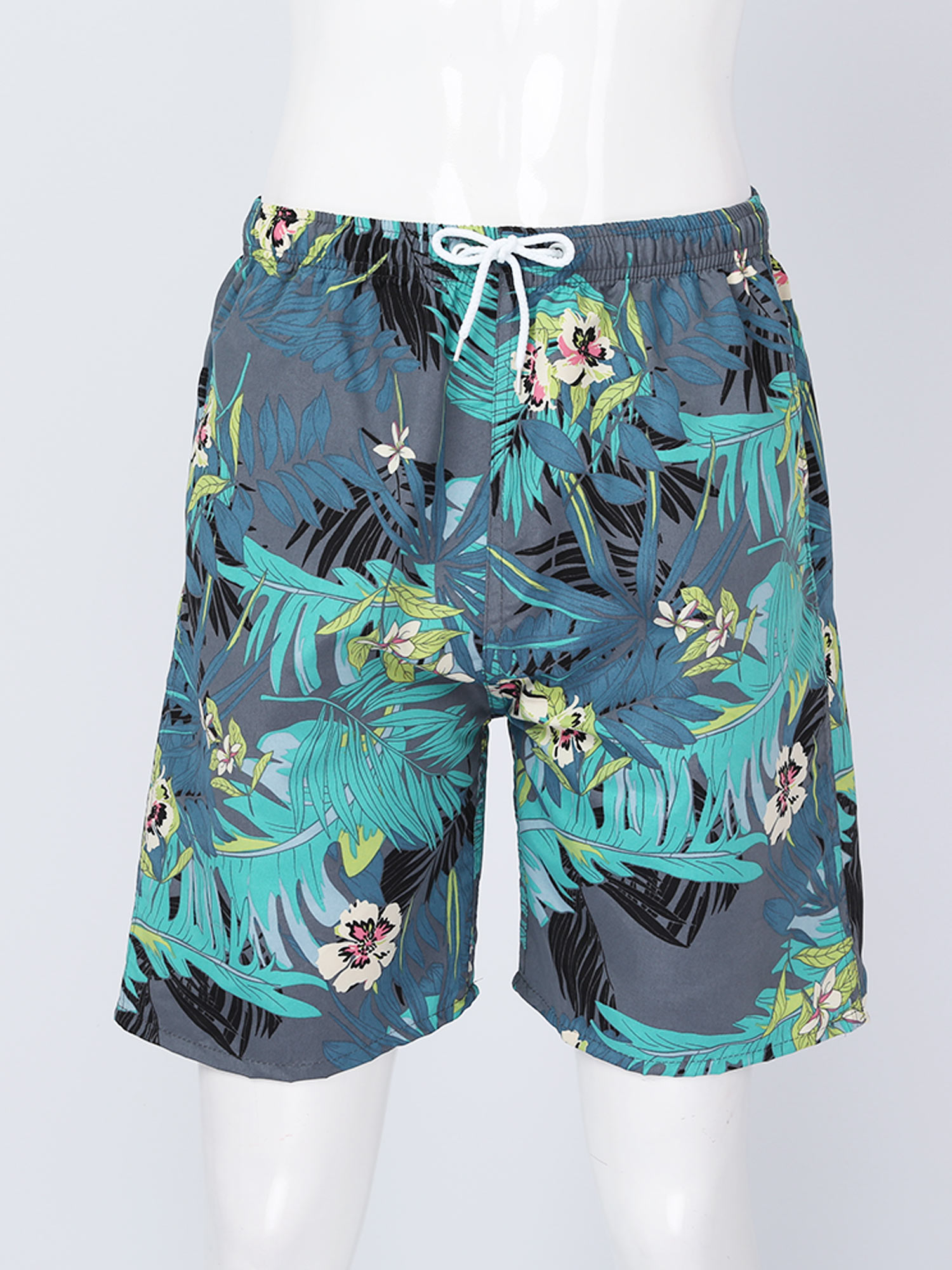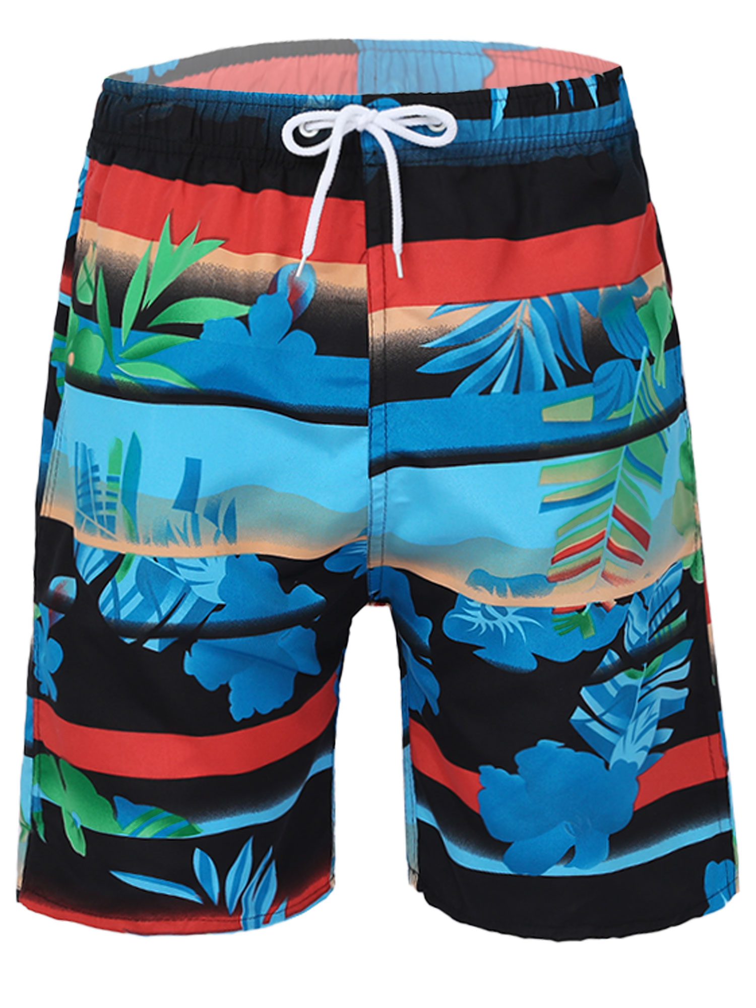 Мужские повседневные Гавайские пляжные шорты с цветочным принтом и эластичным поясом на шнурке, плавки с карманами.