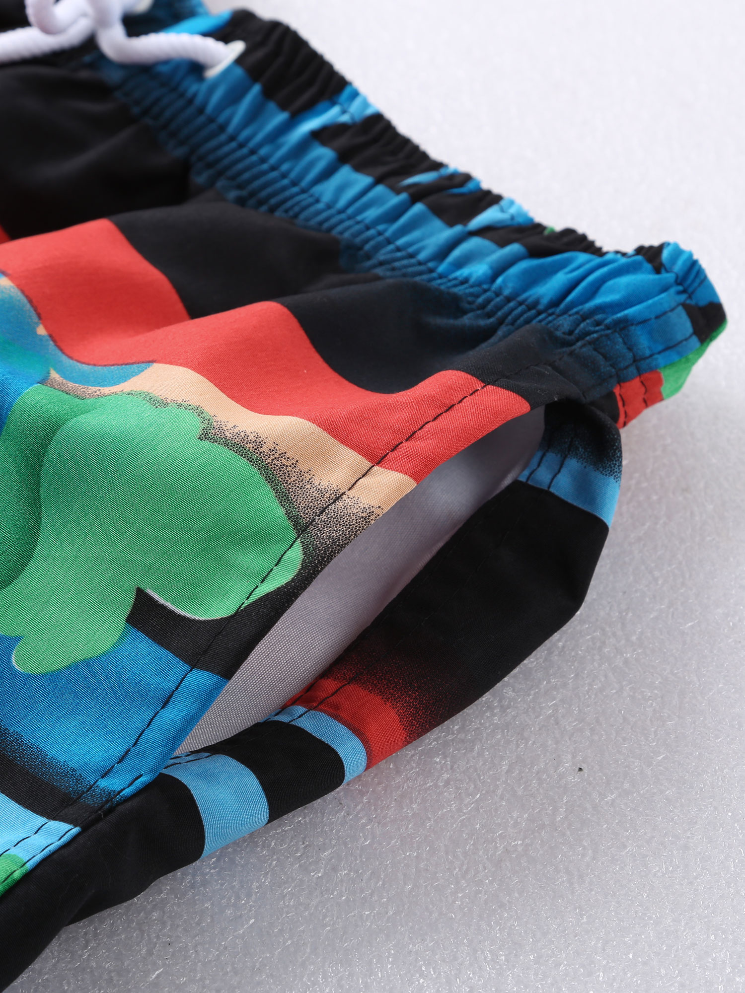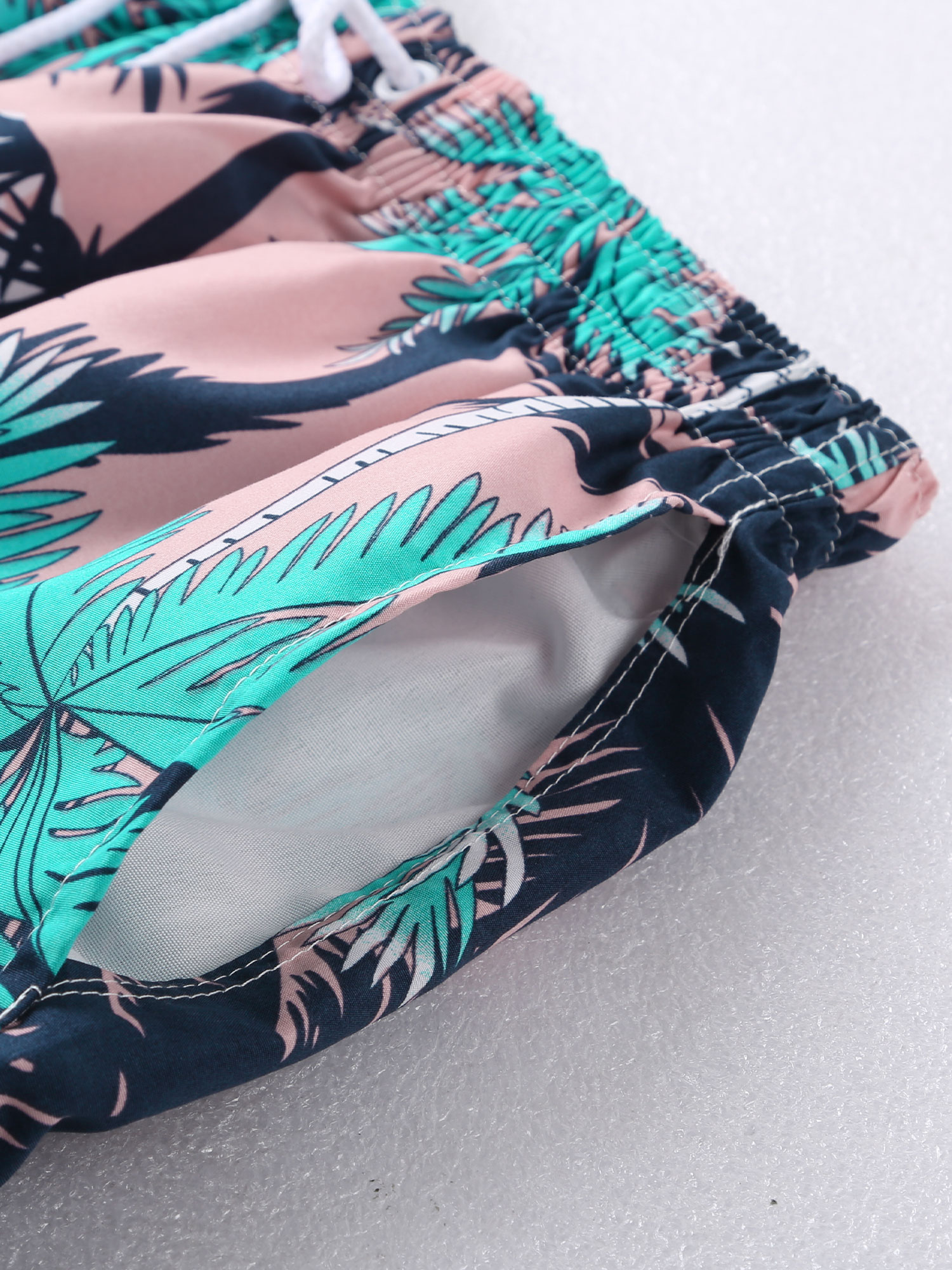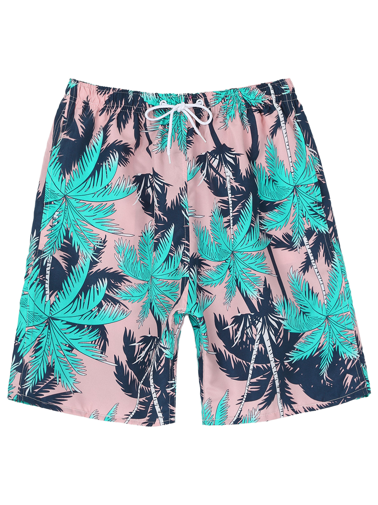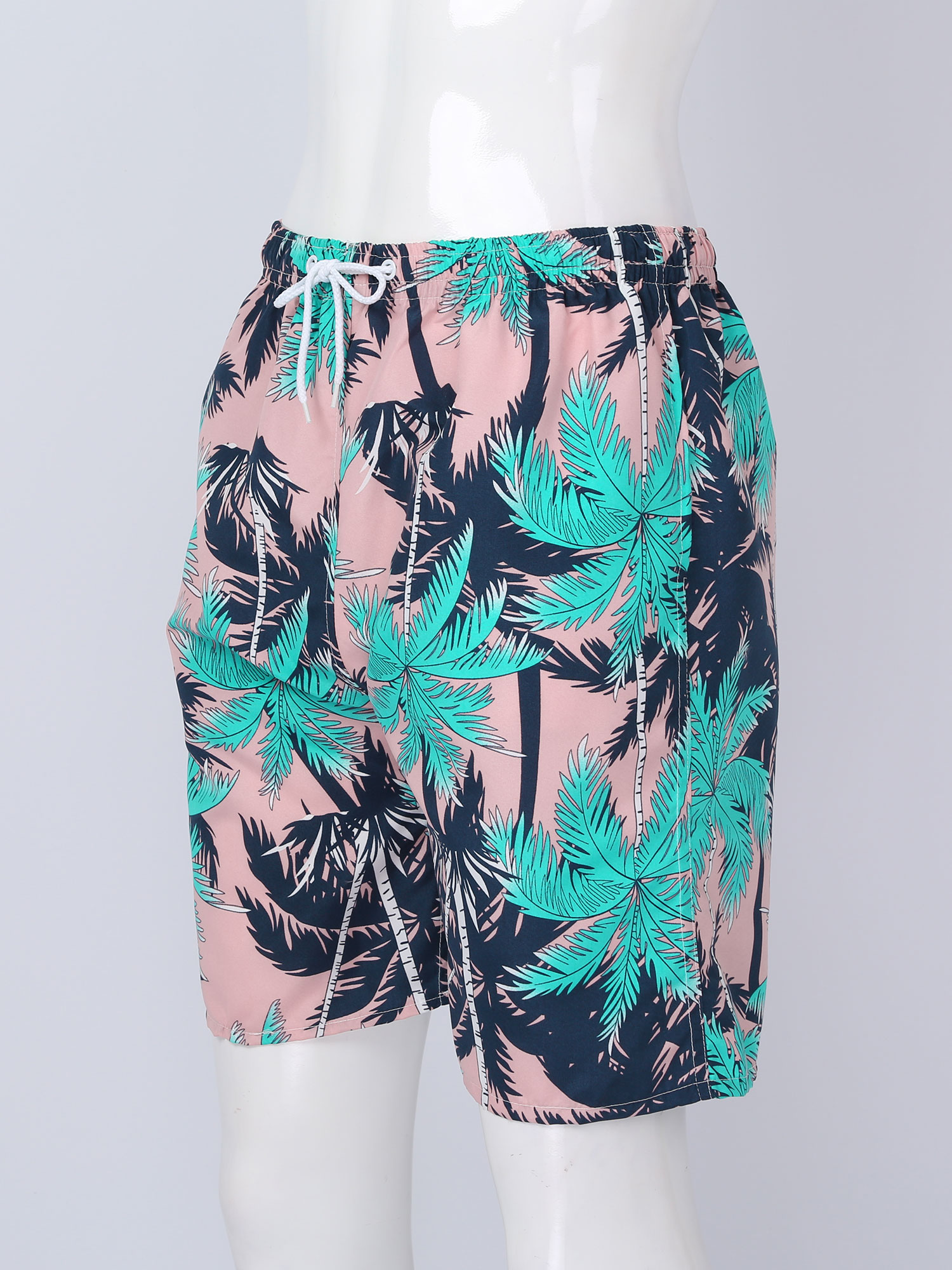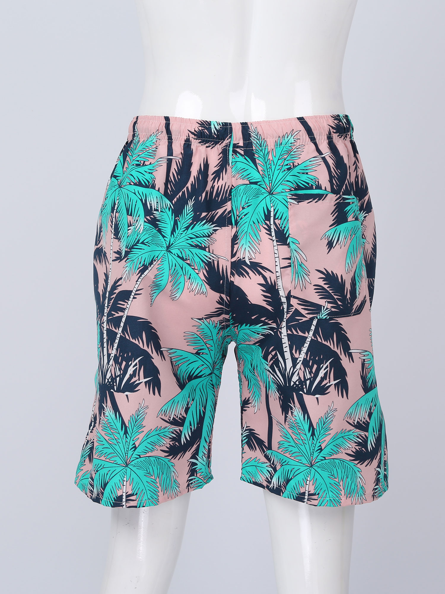 Мужские повседневные Гавайские пляжные шорты с цветочным принтом и эластичным поясом на шнурке, плавки с карманами.