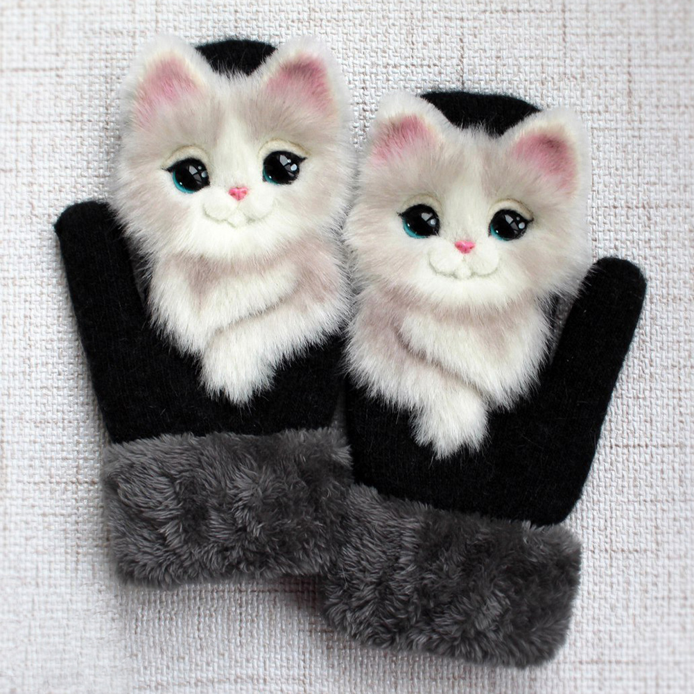 4. Изготовлены из вязаной шерсти и плюша, теплые и удобные на ощупь; Очень милый рисунок с героями мультфильмов делает перчатки более стильными.