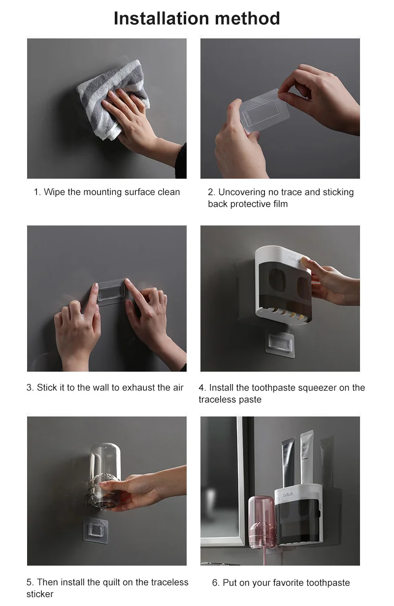 5.【Warms Tips】 убедитесь, что стена высохнет перед установкой набора держателей зубных щеток для ванной комнаты. При использовании пластиковой зубной щетки