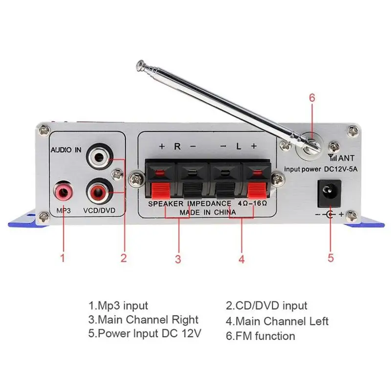 Может воспроизводить музыку в формате MP3 непосредственно с u-диска и MMC карты, поддерживает fm-стерео радио, выбирает высокомощный четырехканальный профессиональный усилитель мощности интегральные схемы, минимальное искажение, но сильная мощность, любительский профессиональный уровень входного и операционного усилителя IC для дизайна цепи, прозрачный и яркий звук