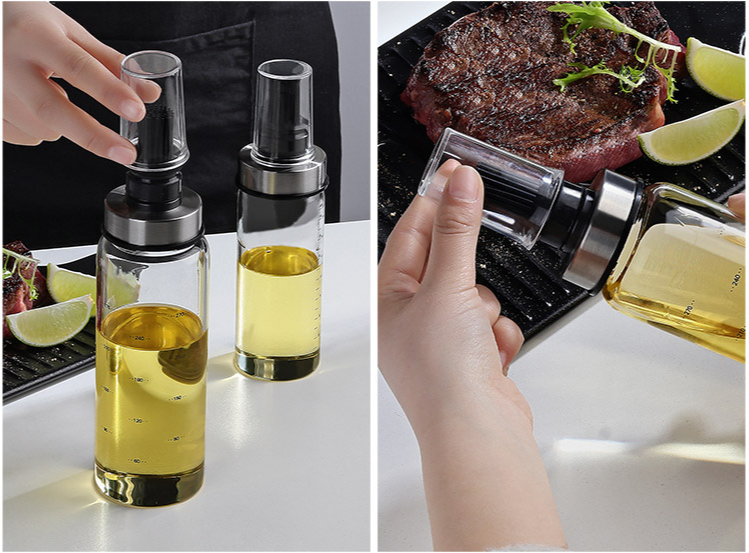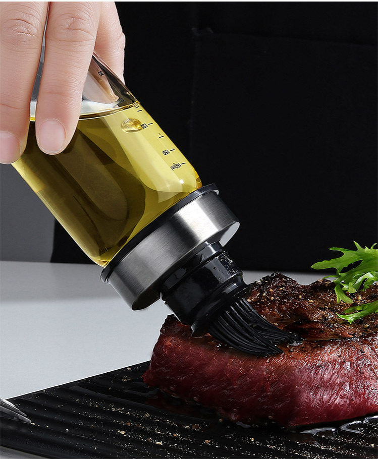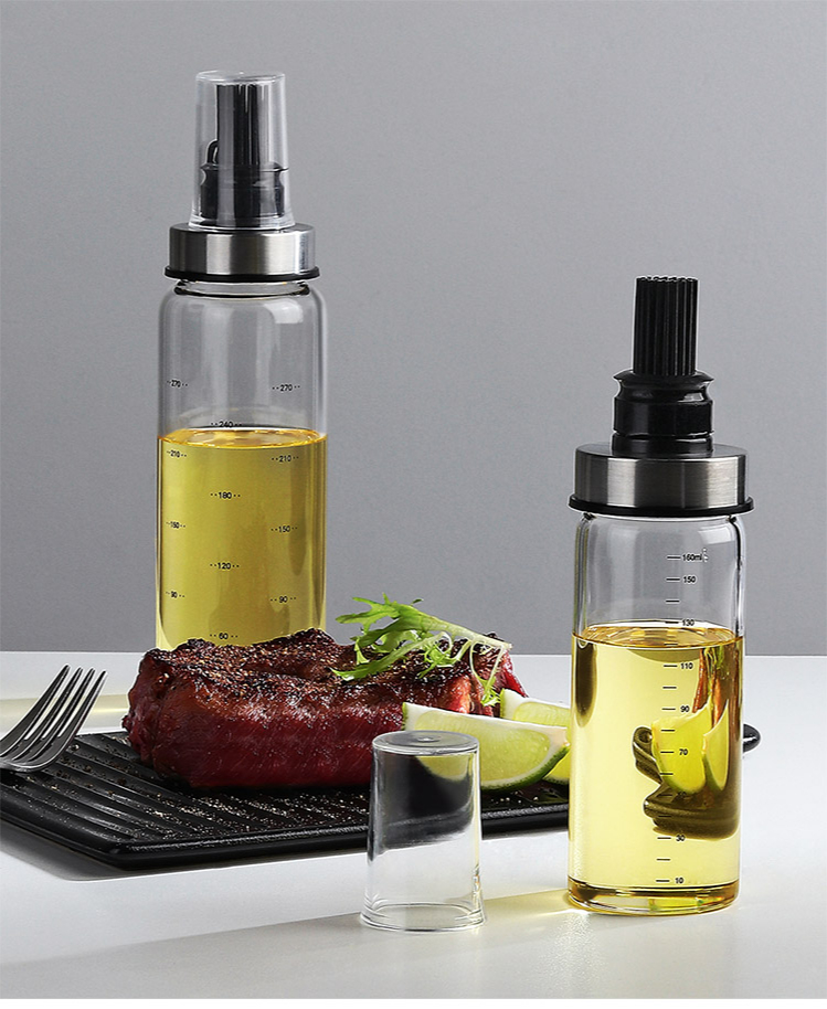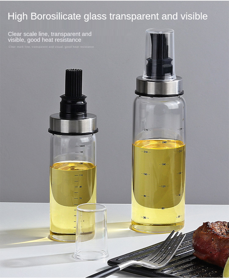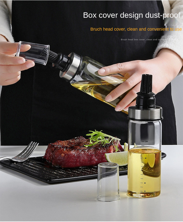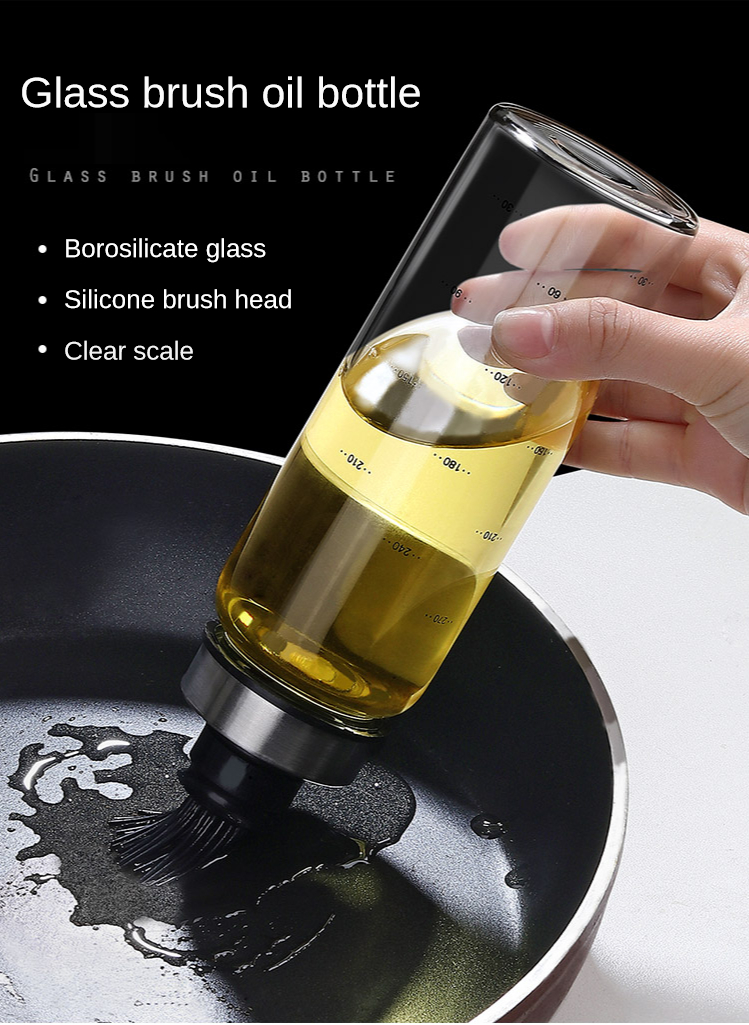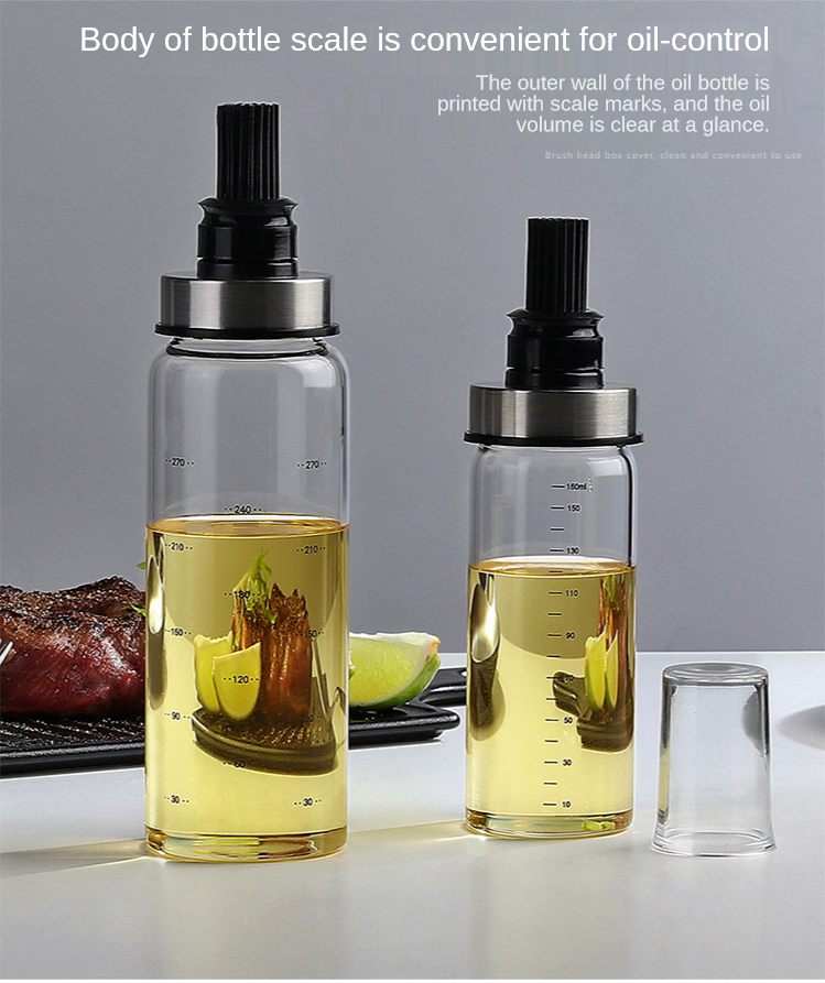 Домашняя 170/300 мл прозрачная видимая высокая термостойкость стеклянная бутылка для масла герметичная с чехлом силиконовая масляная щетка