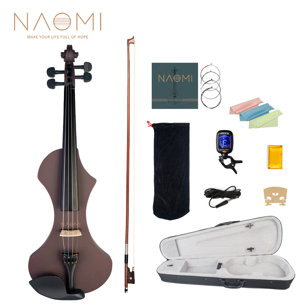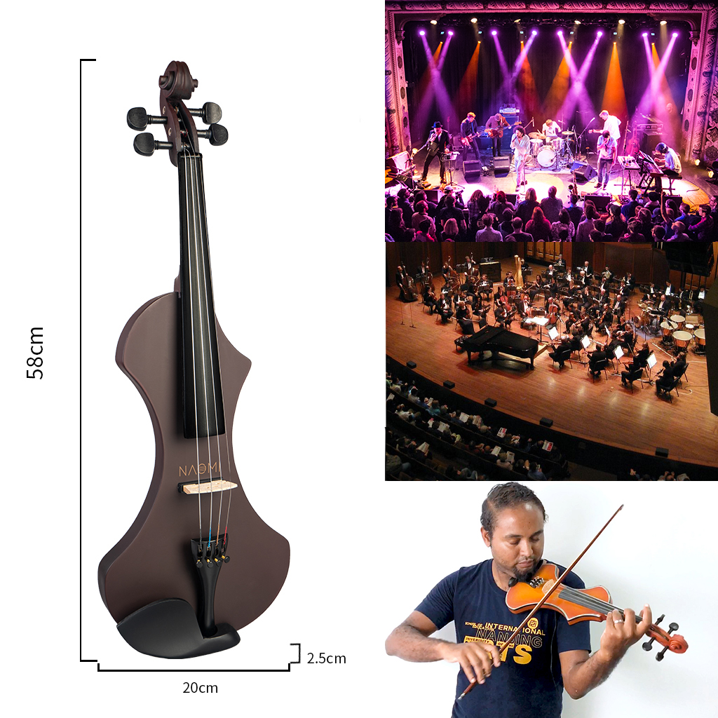Premium violin 4/4 size silent electric violin with glossy varnished surface.