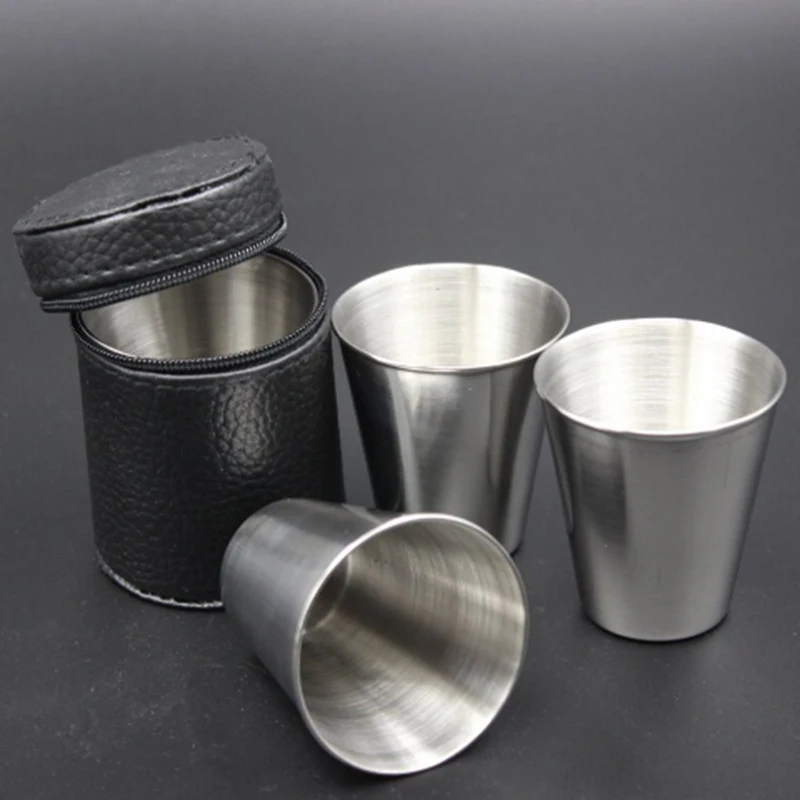 4 шт./компл., полированный 30 мл, мини-Стаканчик Из Нержавеющей Стали, бокалы для вина, с кожаным чехлом, сумка для дома, кухни, бара